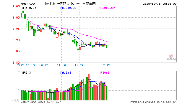 12月15日,恒生科技ETF天弘(520920)跌1.70%,成交额2.58亿元。当日份额增加2.00亿份,最新份额为108.19亿份,近20个交易日份额增加40.00亿份。最新资产净值计算值为92.62亿元。