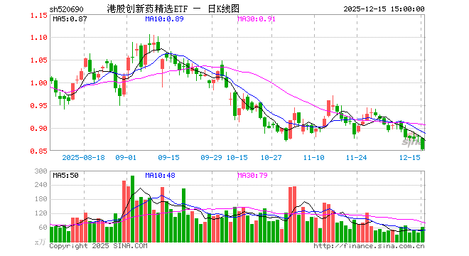 港股创新药精选ETF(520690)业绩比较基准为恒生港股通创新药精选指数收益率(经估值汇率调整后),管理人为博时基金管理有限公司,基金经理为王萌,成立(2025-07-23)以来回报为-15.19%,近一个月回报为-10.96%。