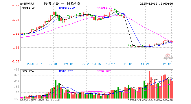 12月15日,通信设备ETF(159583)跌1.86%,成交额2.88亿元。当日份额减少3000.00万份,最新份额为11.27亿份,近20个交易日份额增加1.16亿份。最新资产净值计算值为13.67亿元。
