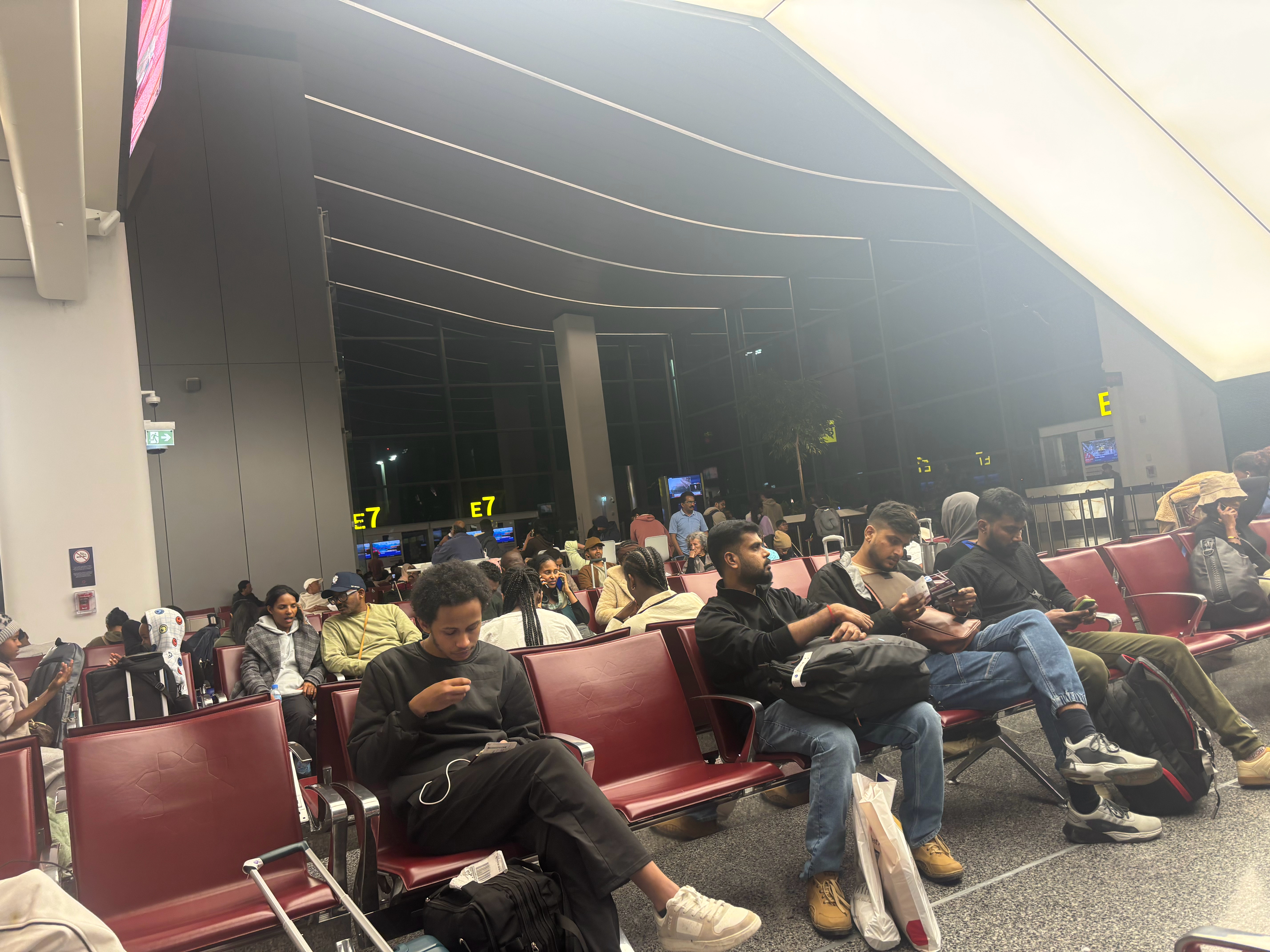 埃塞俄比亚历险记 1从现代富饶的大中国,终于到了埃塞俄比亚,2025年12月14日下午5点的飞机,到16日早晨8点,三十几个小时的奔波,终于到了。这几天,实在是太累了,太累了,我在多哈机场转机等了24个小时,也没地方睡觉,就在机场的长凳上睡了几个小时,腰酸背疼,受不了苦,别来非洲。我白天又跟两个出差的哥们去多哈市区乱逛,背着我60斤的登山包,走了至少几公里,浑身是汗,衬衫都让汗水打湿了。由于等飞机,等的太着急,我竟然看错了登记口,又赶紧找黑兄弟帮忙,他们挺友善的,我运气不错。我在QR1427这个航班的候机大厅,想找个一起去埃塞俄比亚的中国人作伴,一架飞机几百人,我找了三圈,就我一个黄种人,就我一个中国人,地球到处都是国人,中国人去哪里了!由于没找到小伙伴,那种孤独油然而生,去了这么多国家,我这是第一次,没在航班上看到中国人。排队、检票、登机,都很正常,分到我一个距离安全出口最近的座位,空间很大,很爽!我旁边就是一个黑人姑娘,她主动跟我说话,问我是中国人吗?她在中国留学,当英语老师,我跟她说了几句话,飞机就起飞了!我看到附近的几个黑人姑娘,都在右手画十字,向上帝祈祷,安全升空抵达机场,突然感觉,有信仰也不错,这个时候至少是个心理安慰。我看着她们祈祷,突然想起埃塞俄比亚坠毁的那架波音飞机,我们乘坐的也是波音,而且是大型波音飞机,我心里想,我不会这么倒霉吧!飞机起飞后,我就睡着了,因为这几天太累了,直到乘务员把我叫醒了,提供晚餐,牛肉饭。他们的牛肉土豆泥饭,味道怪怪的,主食是土豆泥,不是馒头米饭,不管那么多了,能吃饱就行!登机前,一个刚走完埃塞俄比亚的朋友告诉我,飞机和机场可能有小偷,最好别睡觉,可我太累了,飞机起飞就睡着了,直到还有半个小时到埃塞,我才醒过来!挺好,没有了焦虑的过程,飞机开始降落,我旁边的黑人姑娘又开始祈祷,希望波音飞机给力!一切安好,凌晨两点十分,安全抵达埃塞俄比亚首都的亚迪贝巴机场。 卡塔尔·瓦吉夫老市场