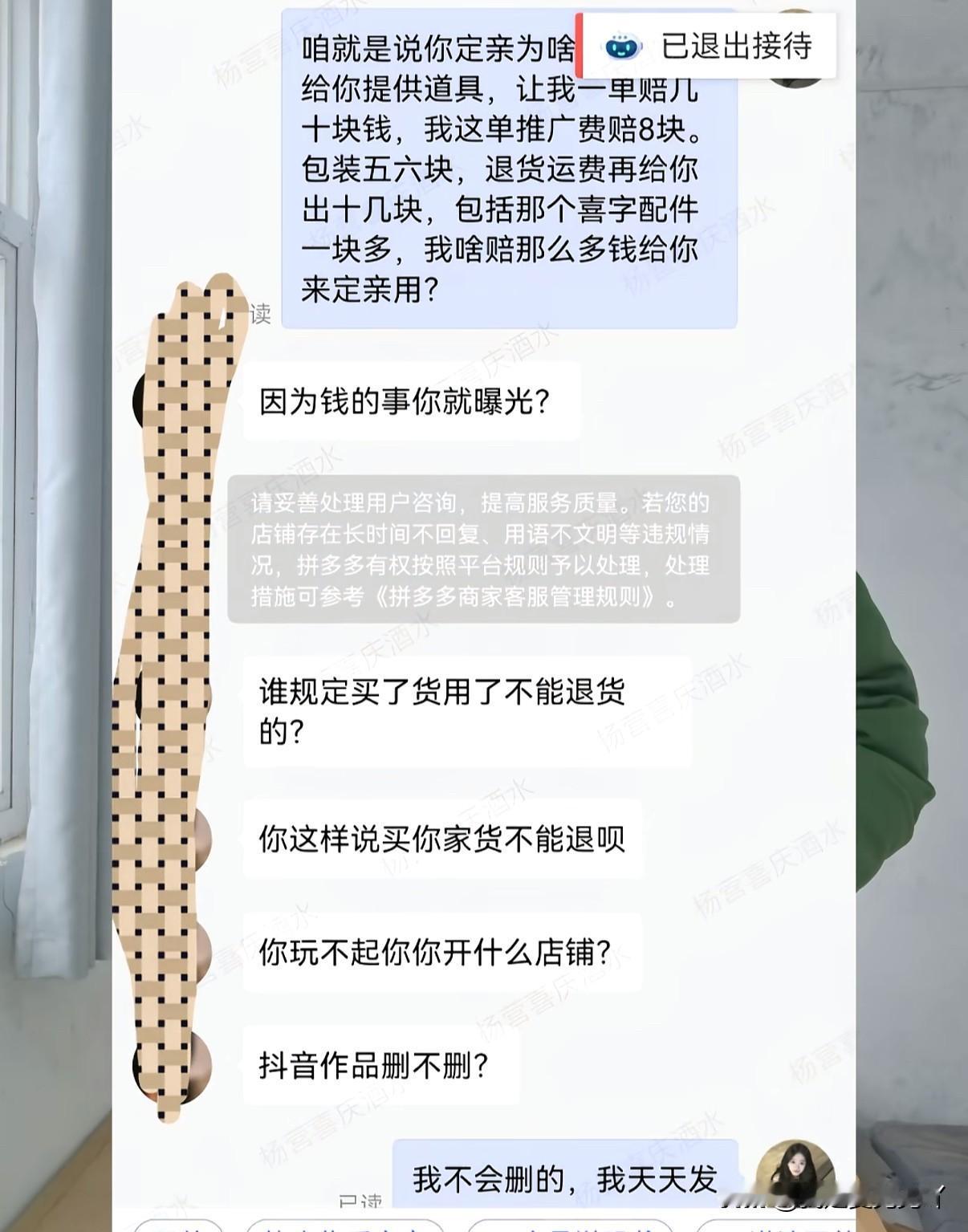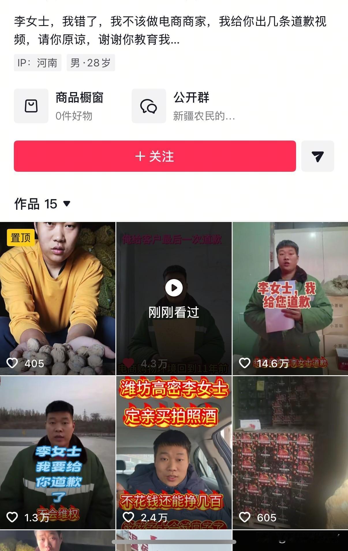 山东潍坊高密的李女士你刷到了吗?老板今日份的道歉又来了 山东潍坊高密市的李女士因办订婚宴花43.9买了5瓶果酒用作订婚摆台用,订婚宴结束后不仅退货还以商品质量问题为由要求商家出邮费。5瓶酒以及附带的婚庆配件有明显使用痕迹拒绝了李女士要求后李女士表示要找平台,平台介入后象征性扣了李女士3.7元李女士退货退款成功 商家将此事发到网上吐槽被李女士看到威胁商家删视频不然就找人来店铺下单要让商家干不下去,还质问商家玩不起开什么店,谁规定用了不喜欢不能退,由于期间李女士找来的人各种挑衅发言商家没忍住说了敏感词又被平台以态度不好扣了600[捂脸] 现在商家每天借此事拍视频向李女士道歉,山东潍坊高密的李女士彻底火了。商家也因为李女士为店铺带来了流量算不算歪打正着呢。在商家评论区里卖各种商品的店主都在诉说着自己的委屈,买a退b的,用两天退货的,找理由仅退款的,用AI批图商品损害要赔偿的,买了几年还发起退货的,平台无理由偏袒买家的。简直成了大型吐槽现场 大家对于网购平台的七天无理由退货退款怎么看呢?