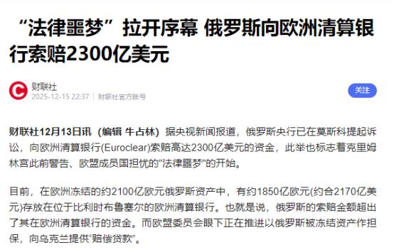 这下该老实了吧 俄罗斯反击来了 冻结俄3000亿美元资产,欧盟想拿去援乌,遭俄起诉! 12月12日,俄罗斯央行突然出手,直接把欧洲清算银行告上了莫斯科仲裁法院。 事情的核心很简单:自2022年俄乌冲突升级,欧盟冻结了俄央行约2000亿欧元资产,其中1850亿由总部在比利时的欧洲清算银行托管。 算上其他西方国家的冻结份额,俄罗斯海外被冻资产总共得有3000亿美元左右,这笔钱可不是小数目,相当于不少中小国家一整年的GDP总和。 欧盟盯着这笔钱不是一天两天了,之前就明里暗里透露过想法,想把这笔钱挪去给乌克兰当援助,要么直接给钱要么给物资,反正就是要拿俄罗斯的钱帮乌克兰接着耗。 欧盟那边为了能顺利动用这笔钱,最近还特意改了规矩。以前这些冻结措施每六个月就得让27个成员国一致同意才能续期,保不齐哪个国家唱反调就续不下去,现在直接宣布无限期冻结,等于把这笔钱稳稳锁在了自己手里。 欧洲理事会主席科斯塔甚至直言,冻结状态会一直持续到俄方结束冲突并赔偿损失,这话里的威胁意味简直藏都藏不住。 他们打的算盘其实明眼人都能看穿,就是想把这笔钱当成筹码,先拿一部分出来给乌克兰提供所谓的“赔偿贷款”,帮着乌克兰撑过未来两年的财政和军事开支。 更有意思的是欧盟内部其实也不是铁板一块,匈牙利和斯洛伐克打从一开始就明确反对这种动用他国资产援乌的做法。 可这次欧盟玩了个投票技巧,不用全体一致同意,只要占欧盟总人口65%的15个成员国点头就行,直接把这两个反对国的“一票否决权”给架空了。 匈牙利总理欧尔班气得直骂,说这是欧盟法治走向终结的表现,等于欧洲领导人把自己摆在了规则之上。斯洛伐克总理菲佐也毫不客气,直接写信表态,绝不会支持任何为乌克兰军事开支埋单的举措。 欧盟这边忙着推进计划,可托管资产的欧洲清算银行心里却直打鼓。要知道这家银行在俄罗斯境内还有约160亿欧元的客户资产,真要是跟着欧盟蹚这浑水,万一俄罗斯采取反制措施,他们得自己掏腰包给客户赔偿。 银行的首席风险官都公开表示担忧,觉得这么干会让国际投资者觉得欧洲不再是安全的投资地点,到头来损害的是整个欧洲的利益。 为了让这家银行安心配合,欧盟还特意拍胸脯保证,会让成员国提供担保,确保银行在任何情况下都能偿还债务。 俄罗斯可没惯着欧盟这毛病,从一开始就把话说得很死。普京早就直言不讳,欧盟讨论没收俄罗斯资产的行为就是赤裸裸的盗窃。 这次俄央行直接起诉,更是把反制落到了实处,明确表示要追索被冻结的资金、证券以及这些资产本该产生的预期收益损失。 俄外交部发言人扎哈罗娃也强势表态,强调未经俄罗斯同意处置这些主权资产,不管是冻结、没收还是包装成“赔偿贷款”,都是严重违反国际法的行为,俄方的回应绝不会迟迟到来。 其实俄罗斯早就有过反制先例,之前就冻结过美国纽约梅隆银行和摩根大通在俄的部分资产,这次起诉欧洲清算银行不过是把反制措施进一步升级。国际舆论对欧盟这波操作也普遍不看好,不少分析都觉得这是在开一个极其危险的先例。 毕竟现在是全球化时代,各国资产相互流通,今天欧盟能以这种理由冻结俄罗斯的资产,明天其他国家是不是也能照猫画虎?这种做法只会严重损害欧盟自己的全球声誉,以后谁还敢放心把资产放在欧洲。 说起来欧盟也是有点被逼无奈,连续这么多年给乌克兰输血,自家的钱袋子早就见底了。有数据显示乌克兰2025年大部分外部融资都来自欧盟,但欧盟现在已经显现出融资乏力的迹象,供乌资金的预算缺口最早可能在2026年2月就会出现。 也正因为如此,他们才急着打俄罗斯冻结资产的主意,想靠这笔“不义之财”继续给乌克兰续命,同时还能在未来的俄乌和谈桌上保住自己的一席之地。可他们显然没考虑到,俄罗斯从来都不是任人拿捏的软柿子,这场资产争夺战,恐怕才刚刚拉开序幕。