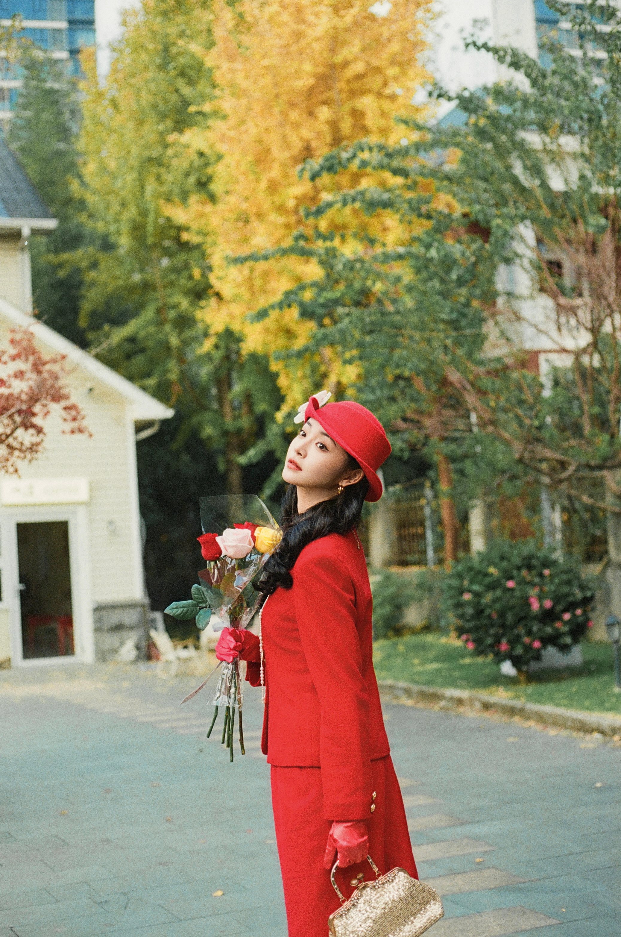 周洁琼80年代生日大片 周洁琼80年代生日大片来啦,红色小洋装复古摩登,好美