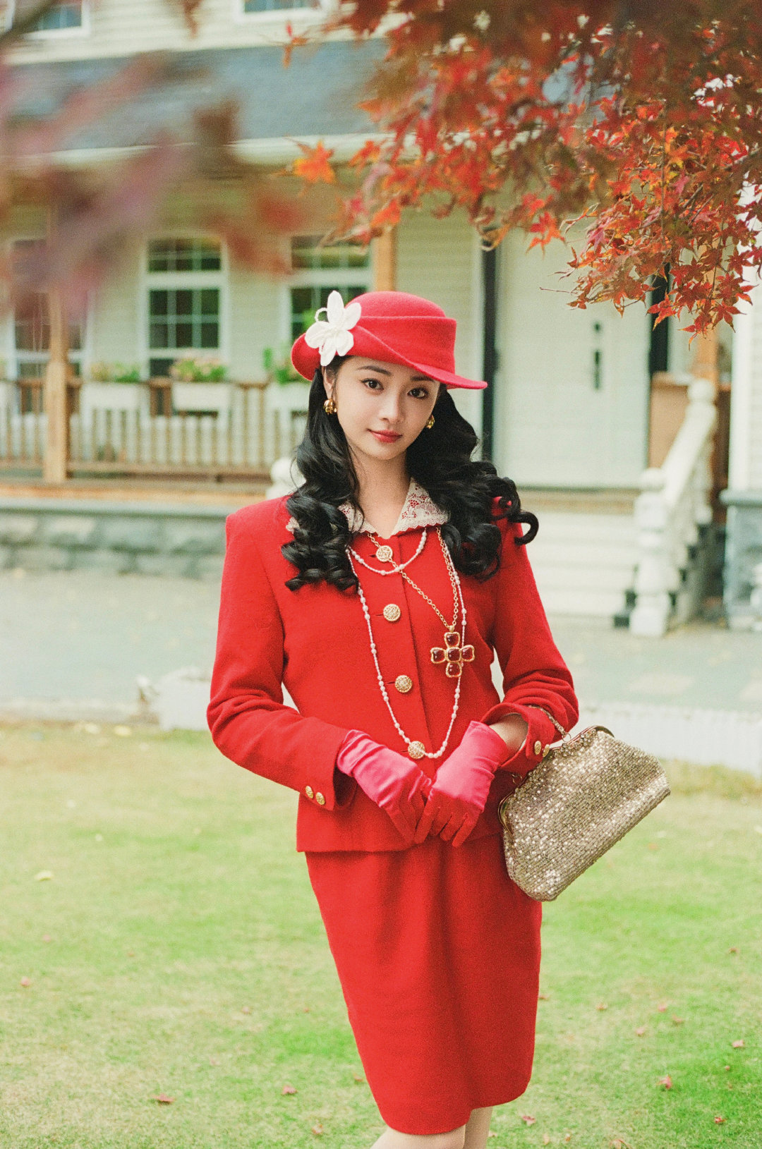周洁琼80年代生日大片 复古美人来啦!80年代生日大片真的好美啊,红色小洋裙造型
