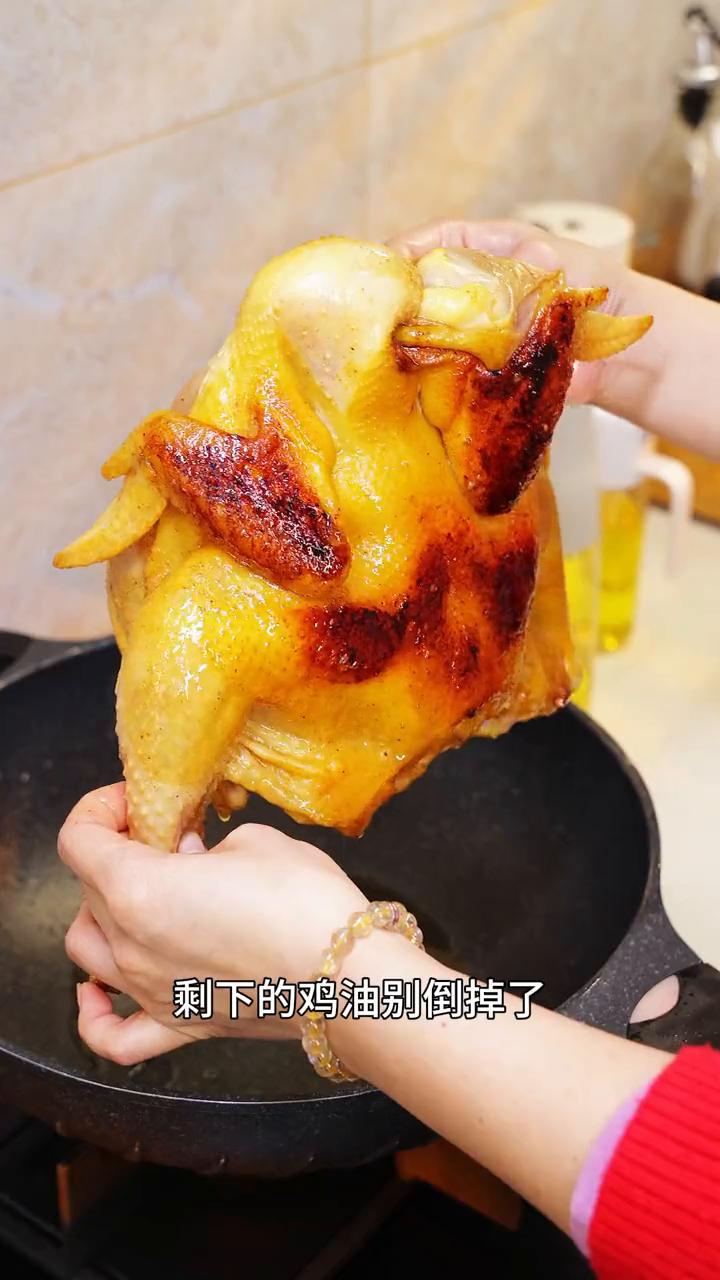 跟大家分享一个一滴水都不用加的干焗窑鸡。看它撕开鸡腿爆汁的那一瞬间是不是要流口水了?我儿子说太香太好吃了,他说他一个人都能吃完这一只鸡。 ·鸡还是选择这种180天的小母鸡,在鸡肚子这里剪开方便入味也更容易熟。 ·稍稍沥干水后加上一包窑鸡粉,还有少许的老抽跟芝麻油涂抹匀。我这个是两斤半的鸡,给大家做个参考,别忘了要留一些窑鸡粉来涂抹鸡肚子。 ·涂抹匀了之后腌制一个小时以上。 ·先把鸡皮煎一下,锅里少少油就行,把鸡皮煎到表面金黄就可以了。 ·剩下的鸡油别倒掉了,用来继续煎香姜片,还可以再放一些洋葱、多多的香菜跟葱段。 ·鸡就直接放在上面,腌出来的水也别浪费了,加入一些白酒增香去腥,中小火焗个20分钟左右。 ·窑鸡粉我用的是竹盐窑鸡皇,一包30克,配料表也是很干净。这里面的盐用的是竹盐,它做出来的菜会比用普通的盐要更加的鲜甜,而且里面还加了有沙姜粉也会更香。 ·焗熟一只鸡只需要20分钟,它也不会焦底,还能够焗出不少油。 窑鸡是广东的客家名菜,用这个方法焗出来的鸡皮爽肉嫩还多汁,真的非常香,手撕着吃更过瘾。喜欢的朋友也可以去试一下。 点赞关注收藏。
