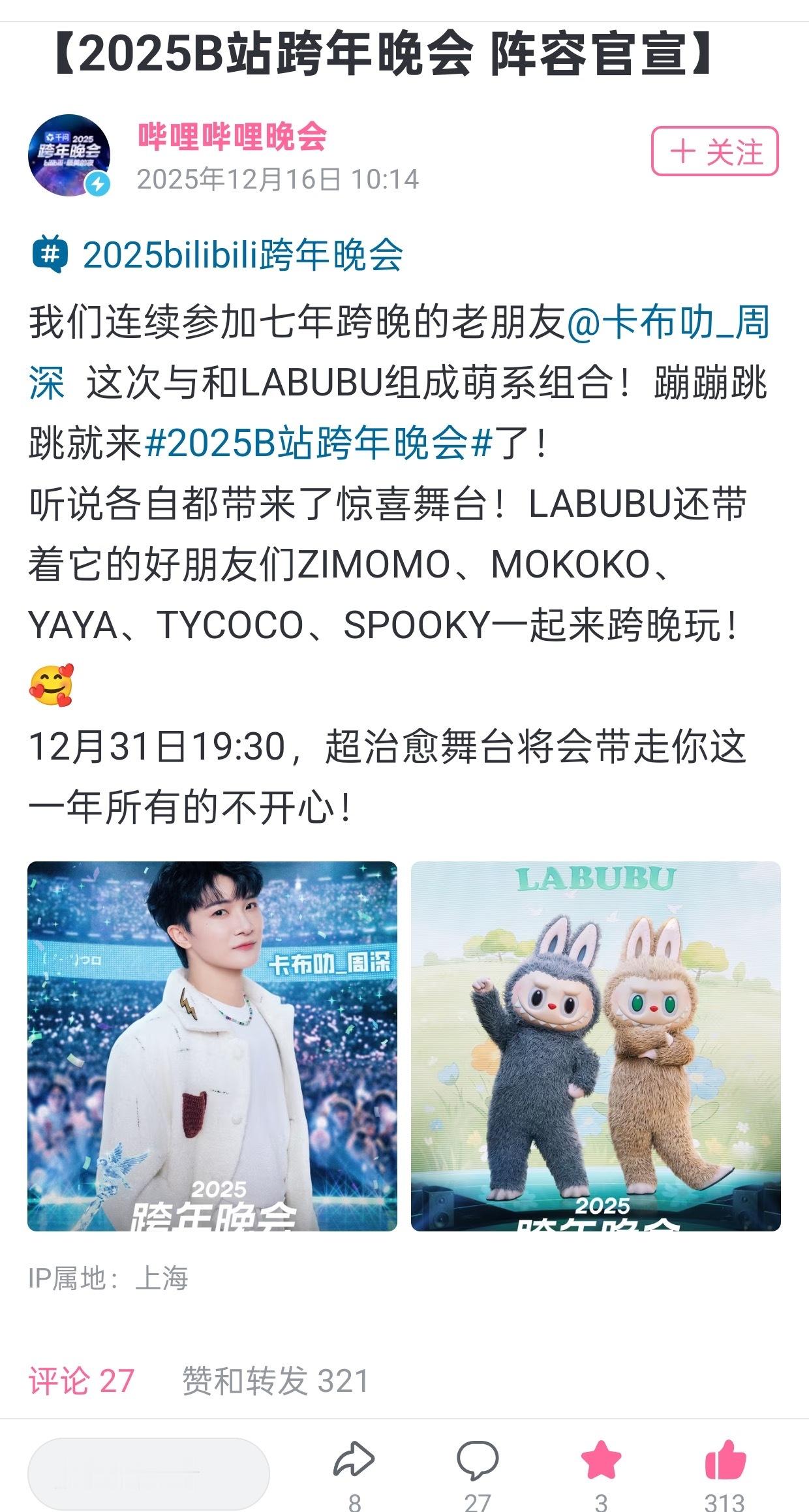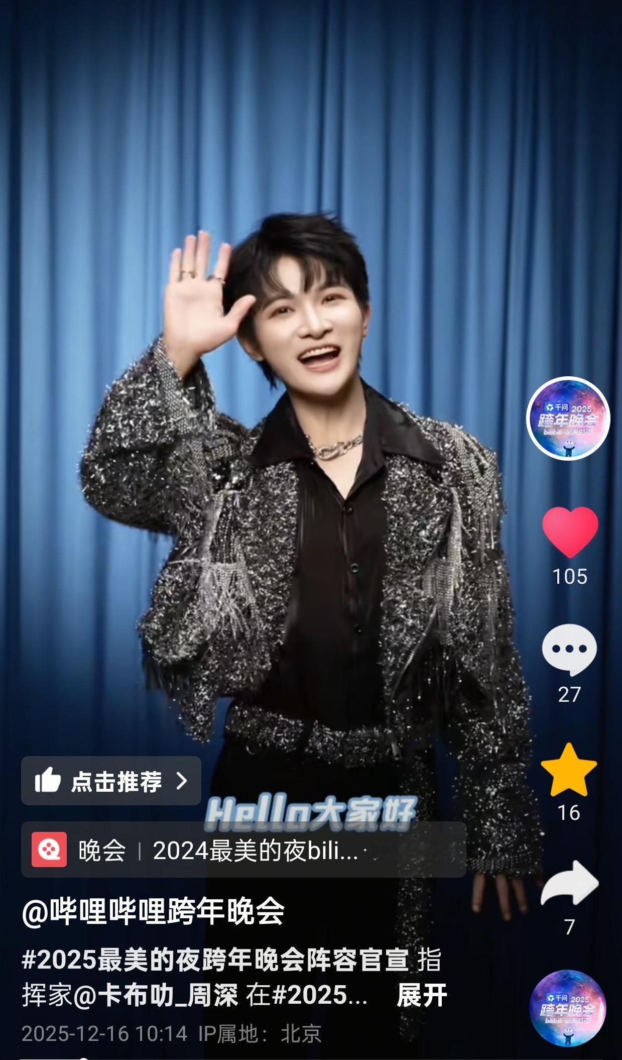 周深📣12.16 破站跨晚物料更新 📣多平台更新深深口播和动态米子们来一键三