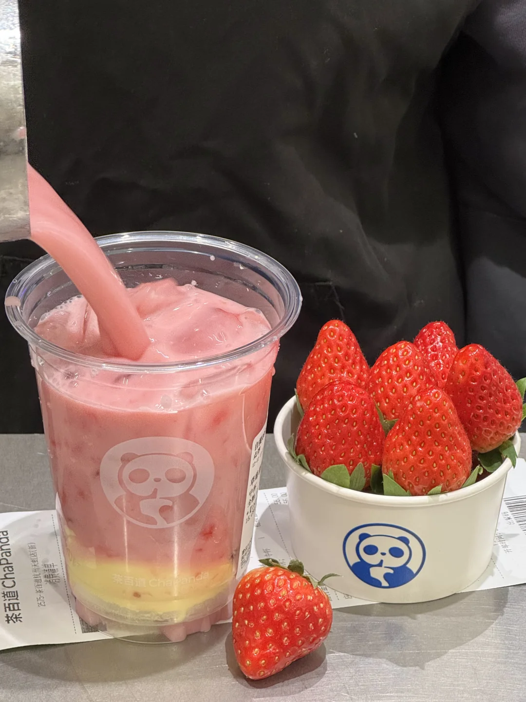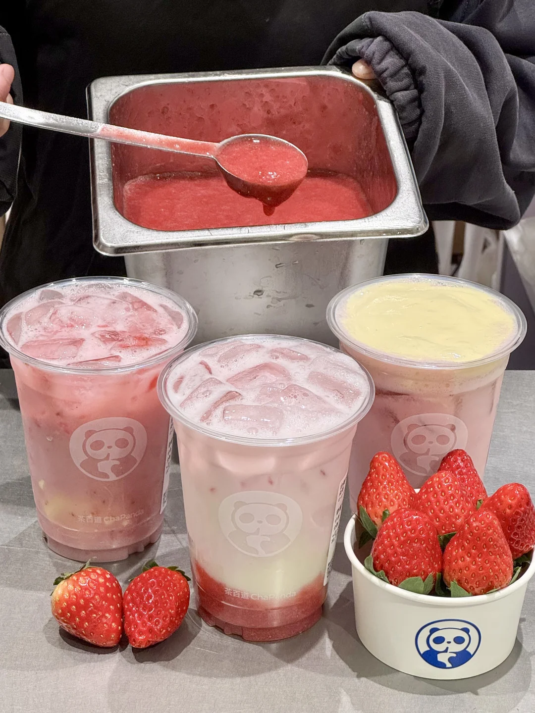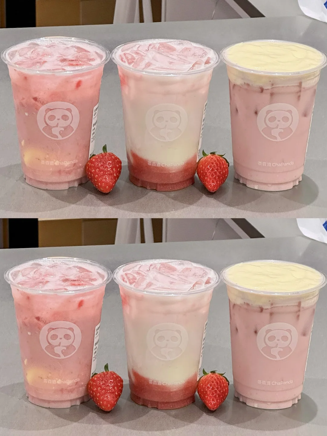 天冷了就在等草莓饮品🤤 茶百道上新三杯新品! wmls带着小草莓第一个冲了! 主打就是一个应景🤩 喝了杯叫草莓慕斯布丁的奶茶~🍓 底下有新鲜草莓果肉和滑滑的布丁🍮,茉莉茶底很清新🍵,一点不甜腻。 还点了草莓夹心奶麻薯,能吸到糯糯的麻薯和草莓粒,口感挺有趣的。 朋友那杯草莓流心半熟芝士🧀,芝士味香浓,酸甜搭配得刚好。
