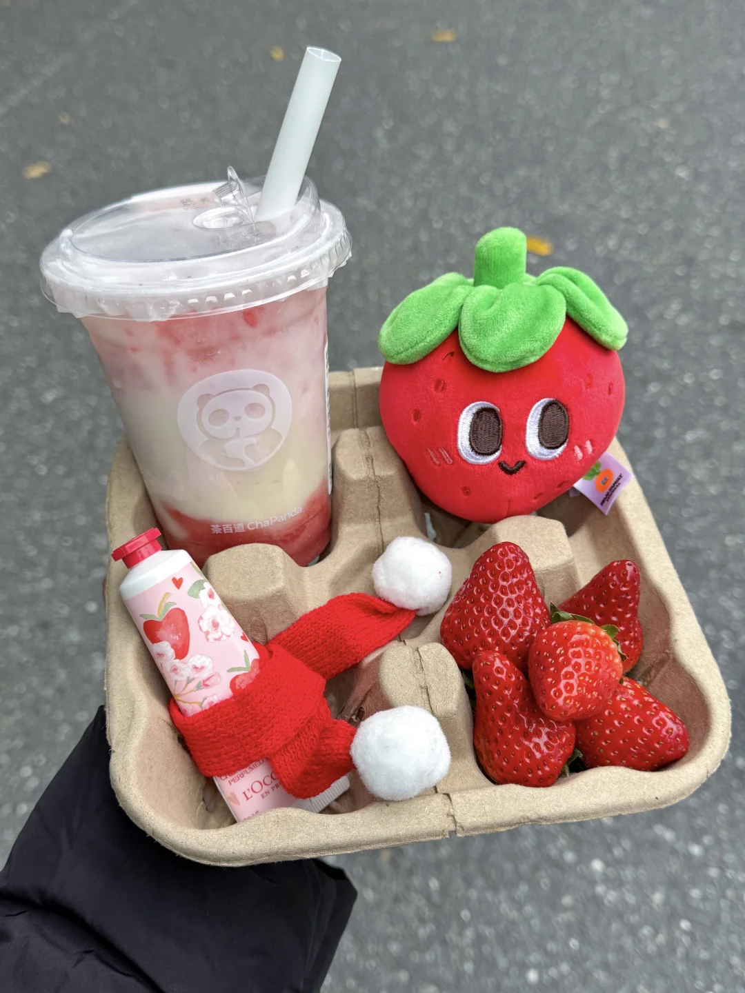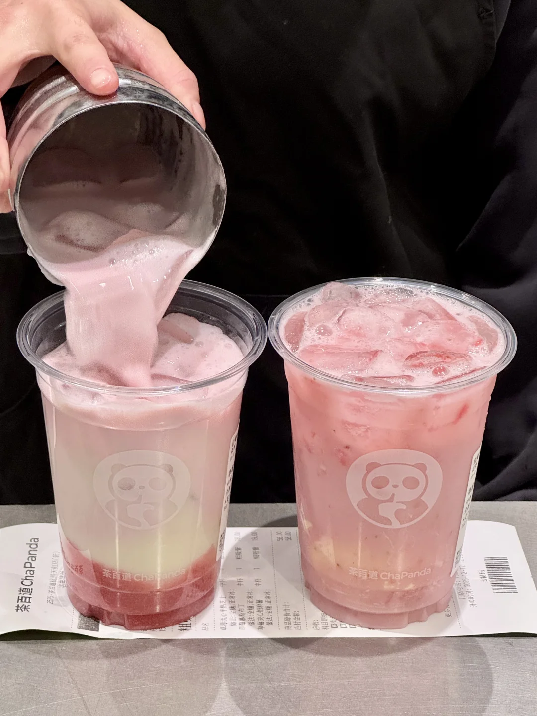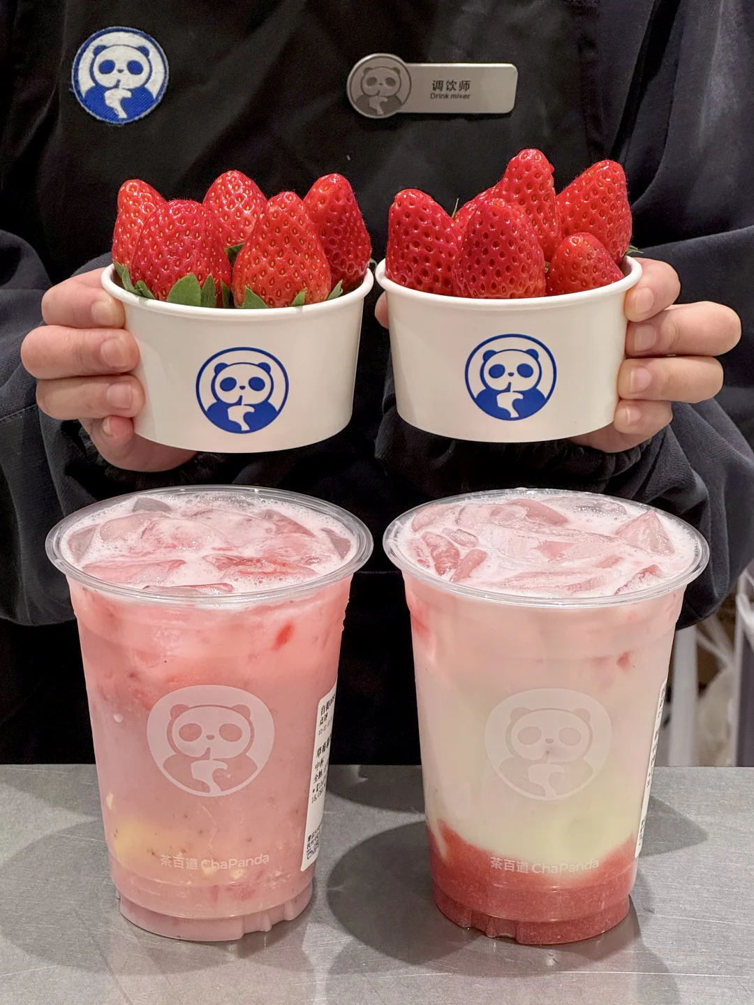 天冷了就在等草莓饮品🤤 茶百道上新三杯新品! wmls带着小草莓第一个冲了! 主打就是一个应景🤩 喝了杯叫草莓慕斯布丁的奶茶~🍓 底下有新鲜草莓果肉和滑滑的布丁🍮,茉莉茶底很清新🍵,一点不甜腻。 还点了草莓夹心奶麻薯,能吸到糯糯的麻薯和草莓粒,口感挺有趣的。 朋友那杯草莓流心半熟芝士🧀,芝士味香浓,酸甜搭配得刚好。