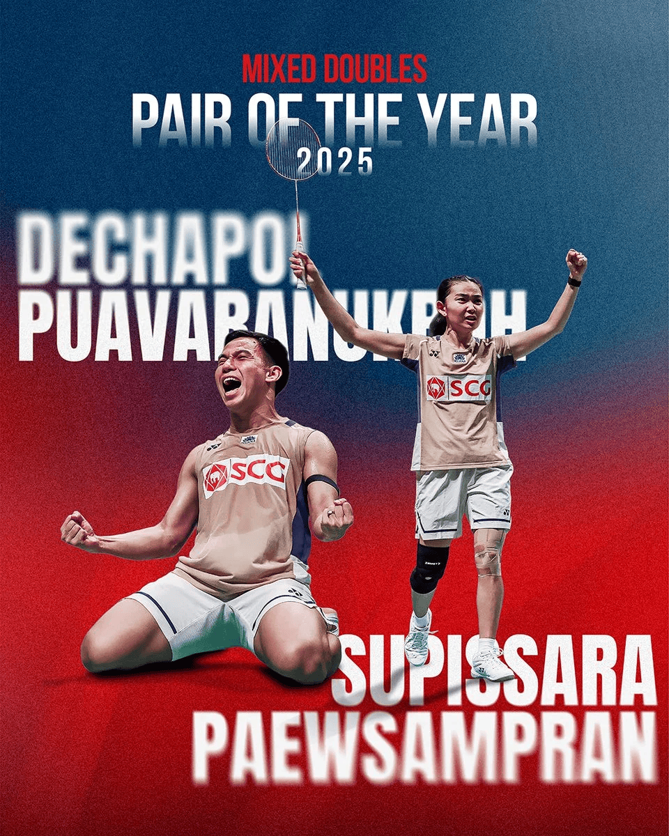 最佳混合双打:德差波-普瓦拉努克罗/沙西丽-德拉达那猜,泰国;