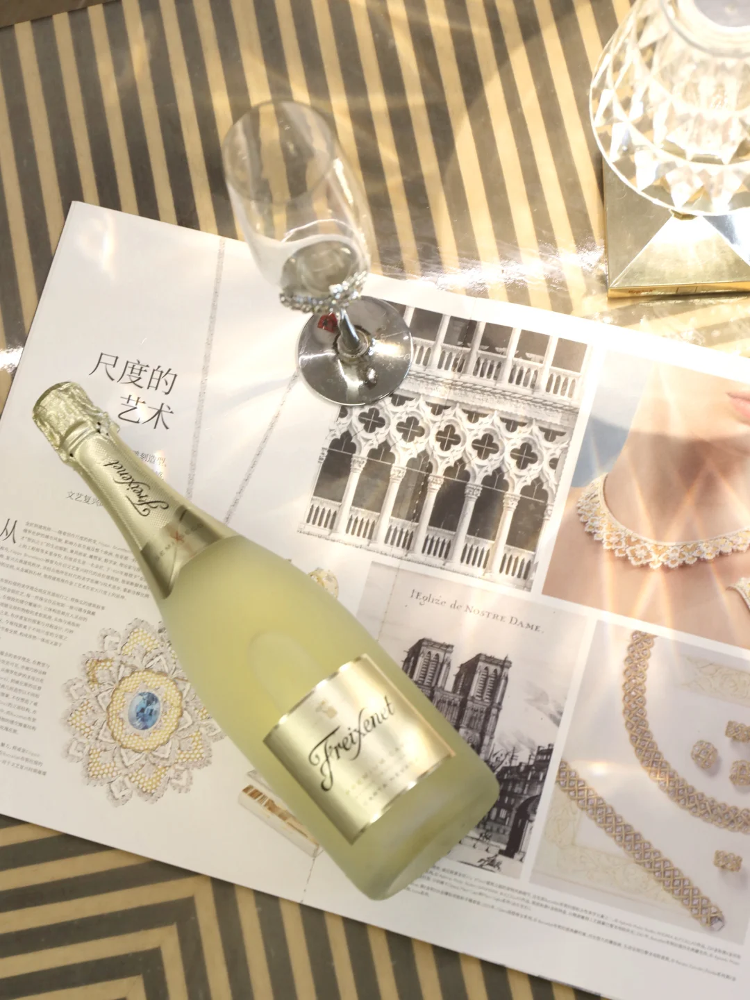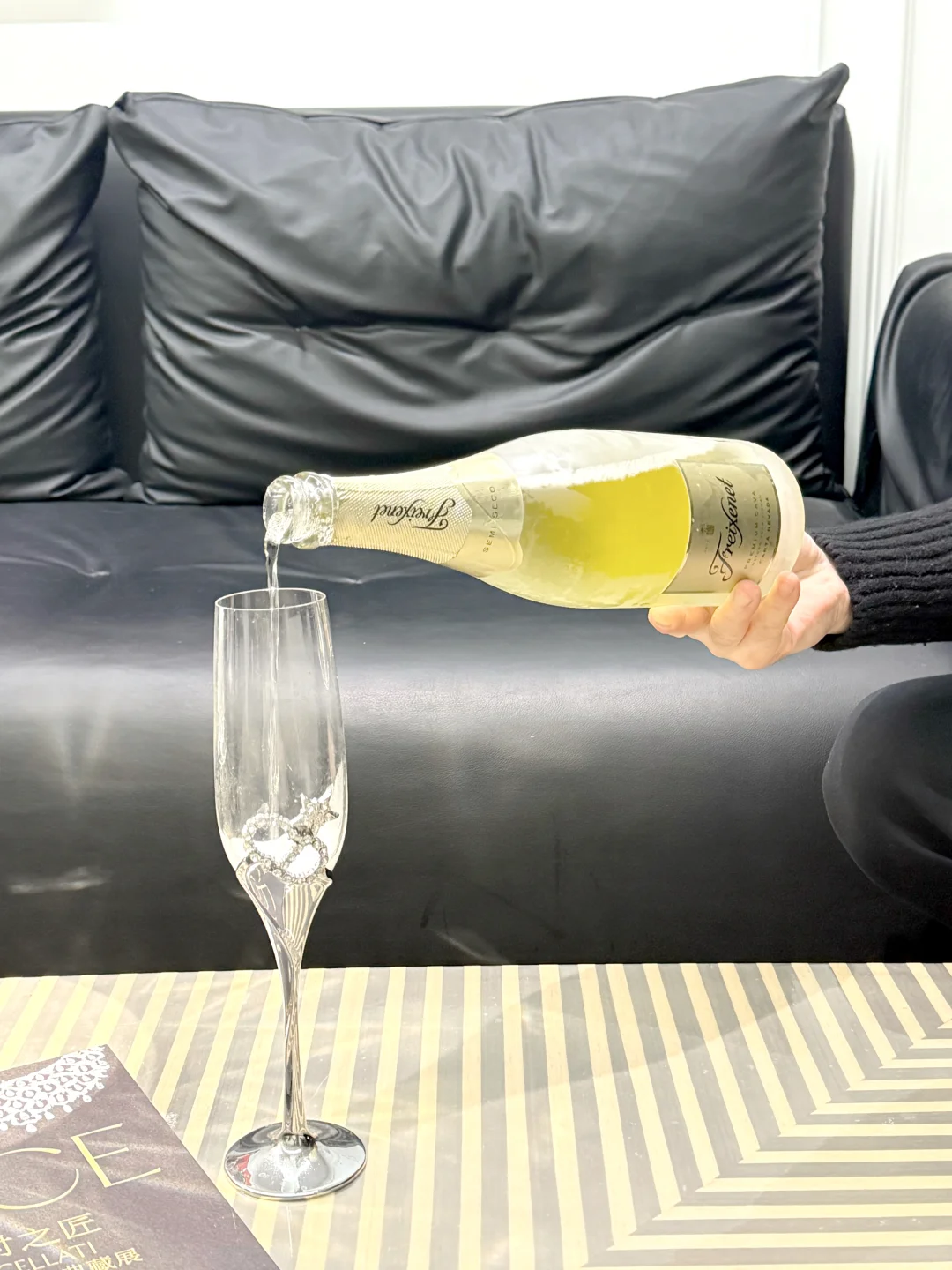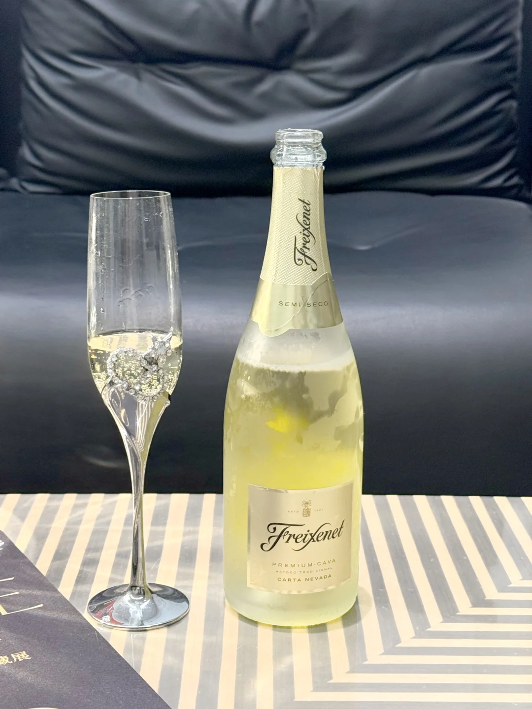 隆重地取出冰镇好的菲斯奈特金牌CAVA。