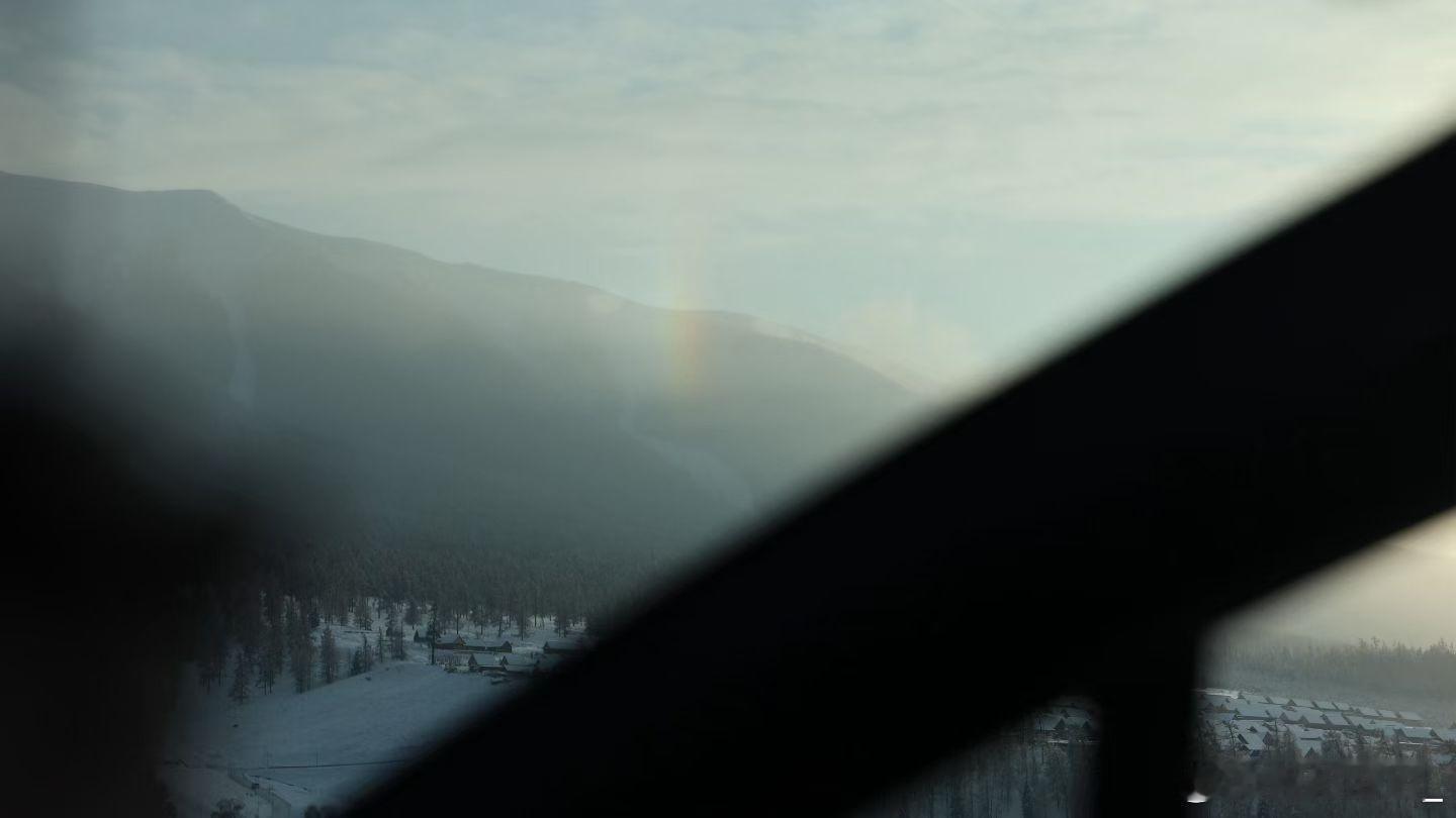 窗棂裁一方冬的信笺,落雪压弯了桦木的肩。村庄蜷在素白里酣眠,雪山举着云,在天边搁浅。我隔着车窗 看到了彩虹。