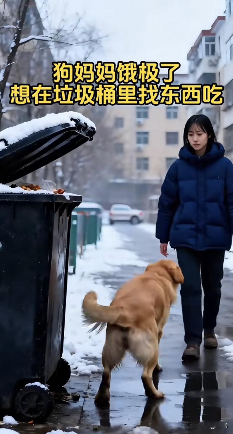 泪目了!一个风雪交加的清晨一位小姐姐路过一个垃圾桶,看到无比凄惨的一幕,一只大肚