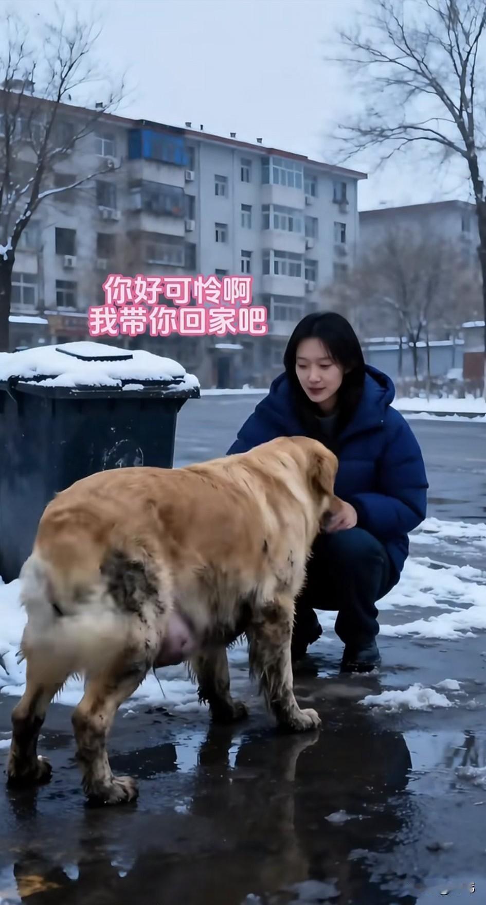 泪目了!一个风雪交加的清晨一位小姐姐路过一个垃圾桶,看到无比凄惨的一幕,一只大肚子的流浪狗正吃力地踮着脚在翻找垃圾桶,它估计很饿了,这才无奈去找垃圾吃,当它看到小姐姐,马上跑到小姐姐面前求助,它乖巧地蹲在小姐姐面前,让小姐姐摸它。 善良的小姐姐非常同情它的遭遇,于是决定把它带回去,她先把狗狗带去宠物医院检查并打了疫苗,之后就带回去给它清洗干净,就这样收养了这只可怜的狗妈妈。后来在小姐姐的悉心照料下,狗妈妈生下了五只小奶狗,小姐姐特别的开心也特别的欣慰。相信在小姐姐的照顾下,狗狗一家会过上越来越好的日子。