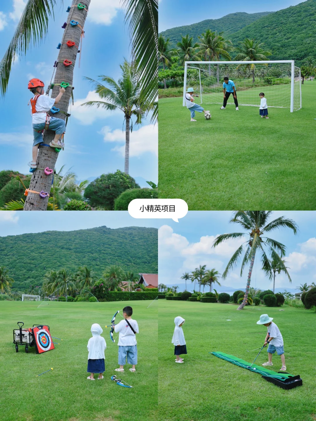 👦稍微大一点的小朋友,还可以直接给他报一个小精英探索之旅,会有专门的教练带着他们玩。儿童高尔夫⛳️彩虹攀爬🌈无敌神箭手、飞盘🥏足球⚽️可以完全不用管,自己可以去泡泡泳池喝喝下午茶☕️