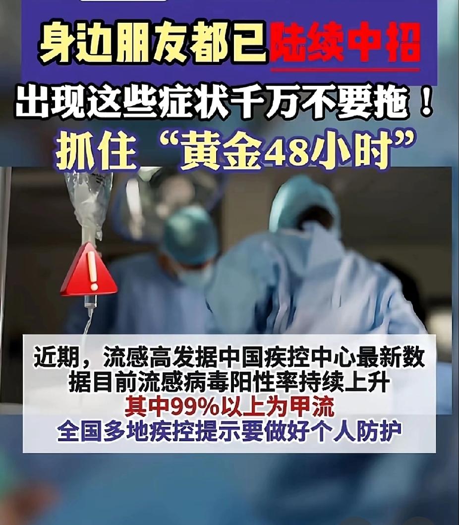 今年甲流的势头特别猛,不少人觉得是吃了不卫生的食物才生病,其实真正的“真凶”就藏在我们周围——通过飞沫和气溶胶传播的病毒颗粒! 最新数据显示,今年流行的流感病毒里,甲型H3N2亚型占比超过了95%,差不多每个人都可能接触到这种病毒。 这种病毒特别会变,每年都换个新模样。你是不是觉得去年得过一次,今年就有抗体了?那可就想简单了!它主要通过空气里的气溶胶传播,在封闭的房间里能飘上好几个小时。像办公室、电梯间、商场这些地方,都是容易中招的“高危区”,一个人打个喷嚏,可能整层楼的人都有被传染的风险。 最需要注意的是家里的老人和小孩,他们一旦被感染,很容易引发肺炎、心肌炎这类比较严重的并发症。不少人觉得自己能扛过去,就不去看医生,结果就耽误了48小时的最佳治疗时间。医生特意提醒:要是一直发烧不退,浑身酸痛得厉害,别拖着,赶紧去医院看看! 其实预防也不难:打流感疫苗、经常开窗通风、出门戴口罩,这些都是有效的办法。可别信什么“捂汗能退烧”的土办法,那样只会让病情更严重。也别误会甘蔗了,流感病毒根本不是通过吃东西传播的。 现在明白为啥你总被传染了吧?赶紧转发给家里人,这个冬天咱们一起做好防护,别让病毒找上门!
