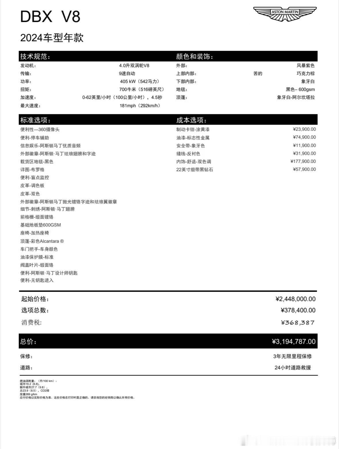 阿斯顿马丁 24款库存清仓 包消费税 特价16x 喜欢您来阿斯顿马丁阿斯顿·马丁
