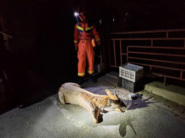 消防员紧急救助一头梅花鹿。图源:南京消防