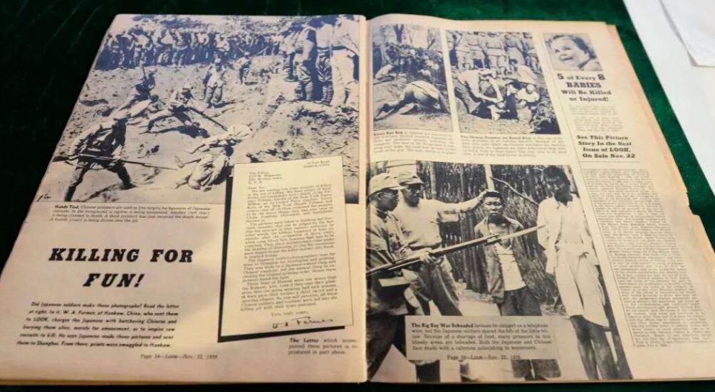中国驻日本大使馆,用中日文双语写道:“1938年11月22日出版的美国杂志,刊登了一篇题为‘杀人为乐’的报道,还刊登了4幅揭露侵华日军暴行的照片。” “杀人为乐”的背后是日本的举国欢庆!当一个民族反复强调自己的发展存亡高于人间正义时,无耻就没有了下限,中国当前就是要让全世界对这个民族有更为清醒的认知。 以子之矛,攻子之盾!日本的侵华暴行,中外都有铁的文史资料为证,岂能狡辩?!我们要揭露流氓日本军国主义罪行! 以前世界上宣传太少了,欧美现在年轻人都不知道,应该在全世界开展不忘历史,牢记警钟的教育!现在的日本军国主义势力是叫不醒的,只有给它一榔头,让它痛醒!