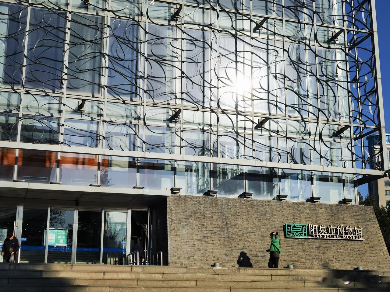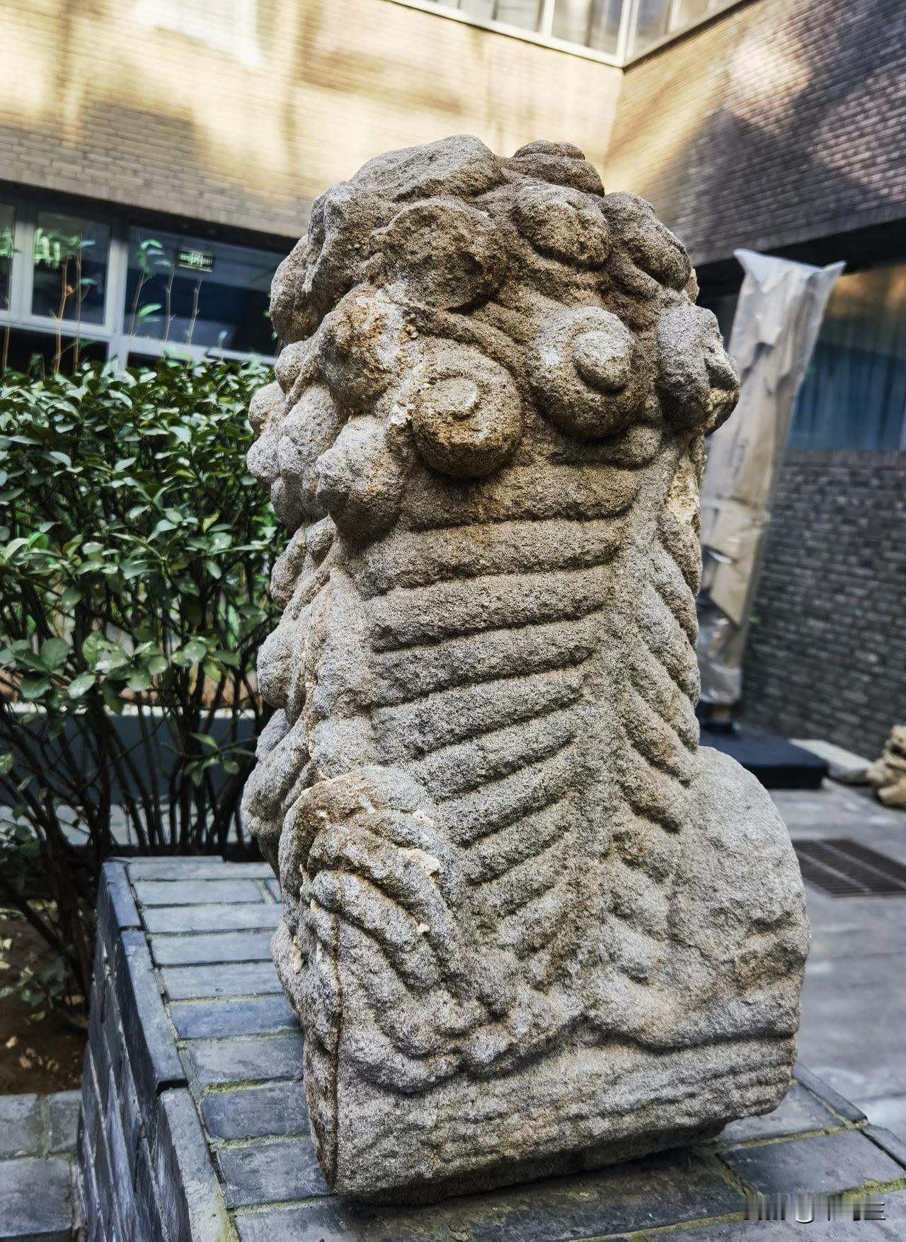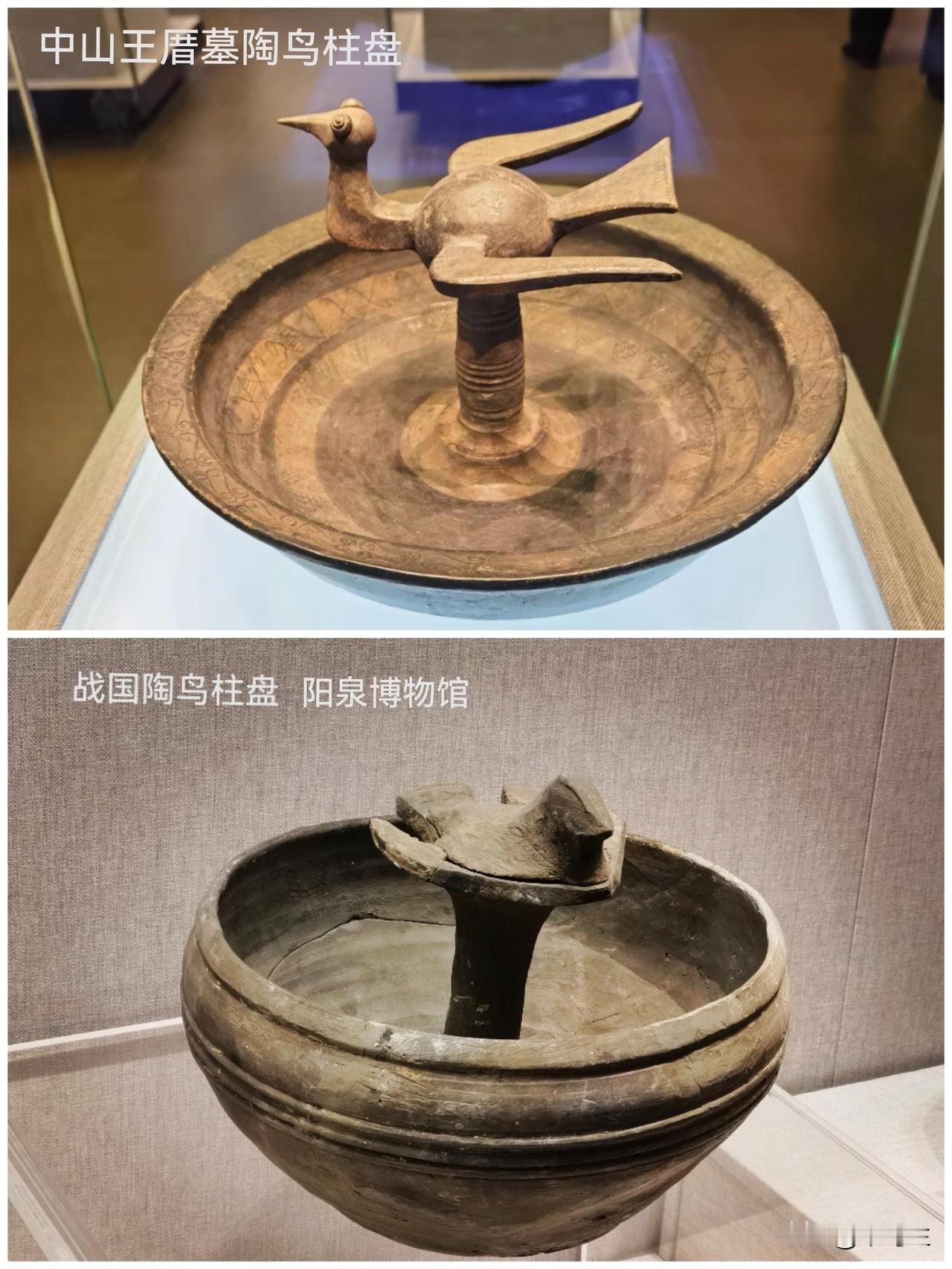 阳泉博物馆 博物馆不大,与图书馆在一起。 金代的文物比较多,当时阳泉是金国管辖区域。 战国时期文物有件陶鸟柱盘与中山王厝一件黑陶鸟柱盘很像,精美程度当然远远不如,民间器物罢。 这种器形猜测属于明器,象征天地沟通,引魂升天。 院内一尊不知年代的石狮子,背部很有特色,不知道为什么刻画成这个样子。