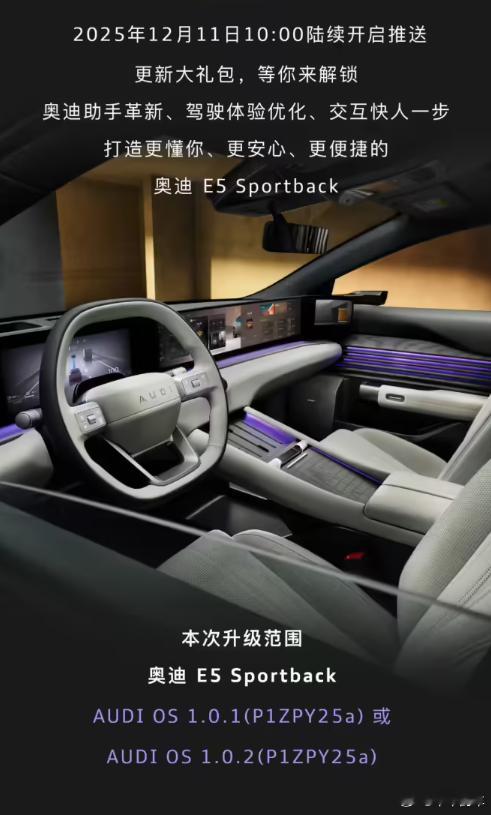这两年大家对“OTA”其实已经有点免疫了,功能名词一堆,真正用得上的没几个。所以看到奥迪给 E5 Sportback 推送第一次 OTA,我第一反应不是“更新了啥”,而是:这次有没有真改到日常用车的痛点。看下来,AUDI OS 1.1.0 至少方向是对的。它没有一味堆“炫技功能”,而是明显在补交互和使用细节的课。比如奥迪助手这次加了“长期记忆”,说人话就是:不用你每次重新教,它会慢慢记住你的习惯。这一点,其实比单次识别准不准更重要,车机最怕的就是“每次都像第一次见面”。视觉这块也挺奥迪的,不是为了炫,而是为了区分状态。运动模式、舒适模式在动效上的差异,让你一眼知道车现在是什么“性格”,而不是所有界面一个样。环形灯改成全天候点亮,也算是听劝了,之前那种“只在晚上才亮”的逻辑,确实有点拧巴。我比较认可的是交互整合这部分。车窗、车门、儿童锁放到同一界面,说白了就是不折腾人。很多车机的问题不在技术,而在设计者没带娃、没在窄路倒过车。这次 R 挡加 AUTO HOLD、副驾能独立查地图同步导航,都是典型的“用过才会改”的功能。当然,也要实话实说:这次 OTA 更像一次“打基础”,不是那种能让人惊呼“颠覆”的升级。但对一台豪华品牌的车来说,稳定、顺手、少分心,本身就是竞争力。我的车今天好像有情绪了AUDI迎来大规模OTA