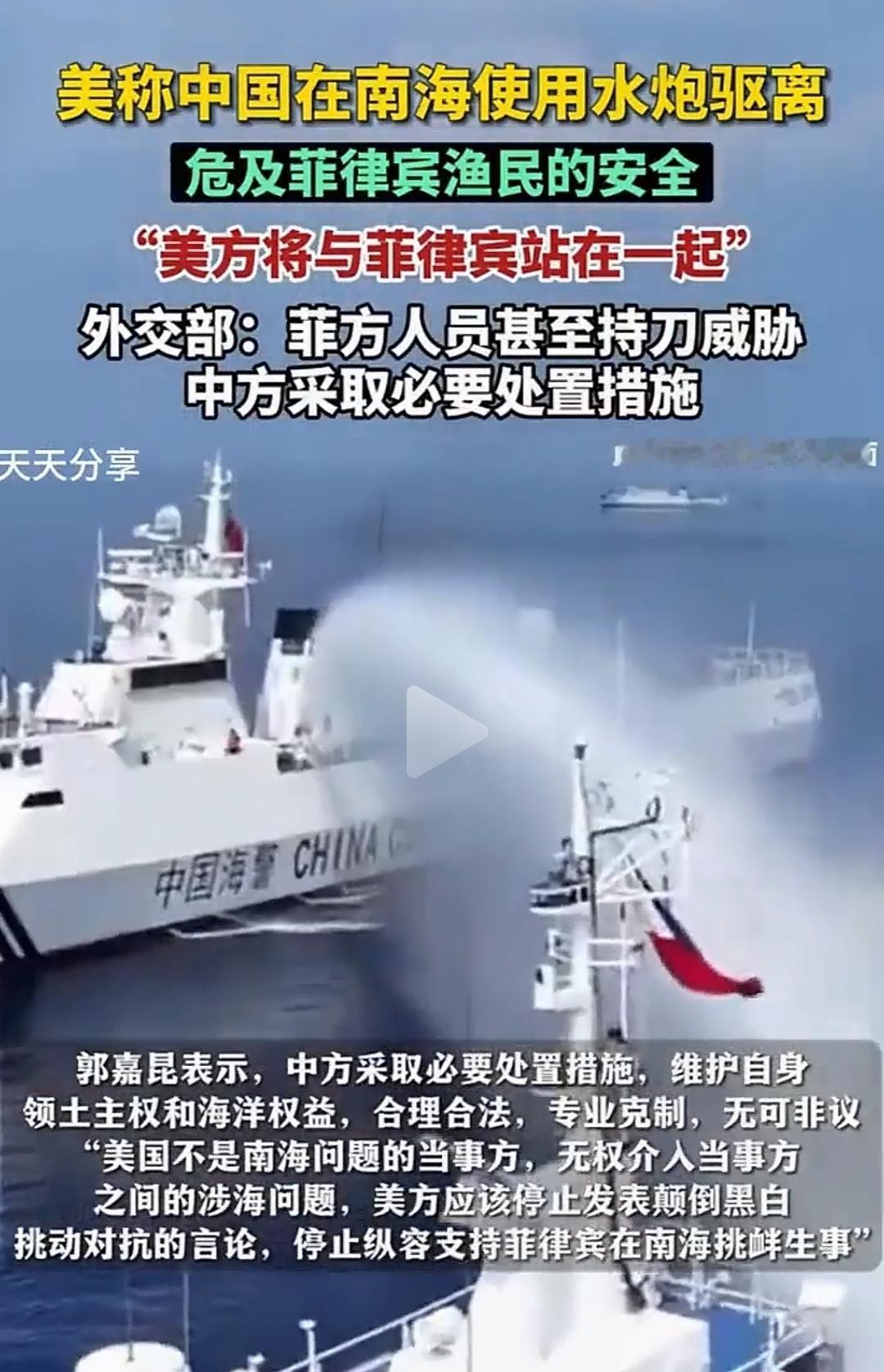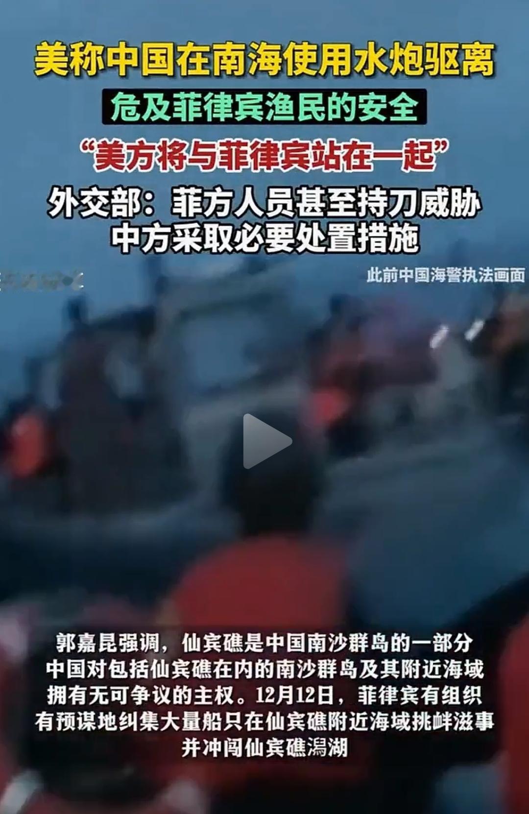 法不能向不法让步。菲律宾人都拿出刀来了,用水炮已经算人道客气的了。 近来菲方组织人员持刀挑衅中国海警,是对中国领土主权的公然挑衅,必须予以严厉回击! 持刀、持枪、持棍等都是海盗,他们违反中华人民共和国的法律法规,必须依法严惩,不能不了了之,如有反抗,依法击毙,同时做好取证工作,向世界公布! 南海老祖宗留下遗产,中华版图一寸都不能少。向铁血丹心的中国人民解放军致敬!向威武霸气的中国海警致敬!扬我国威,长中华之威风志气!