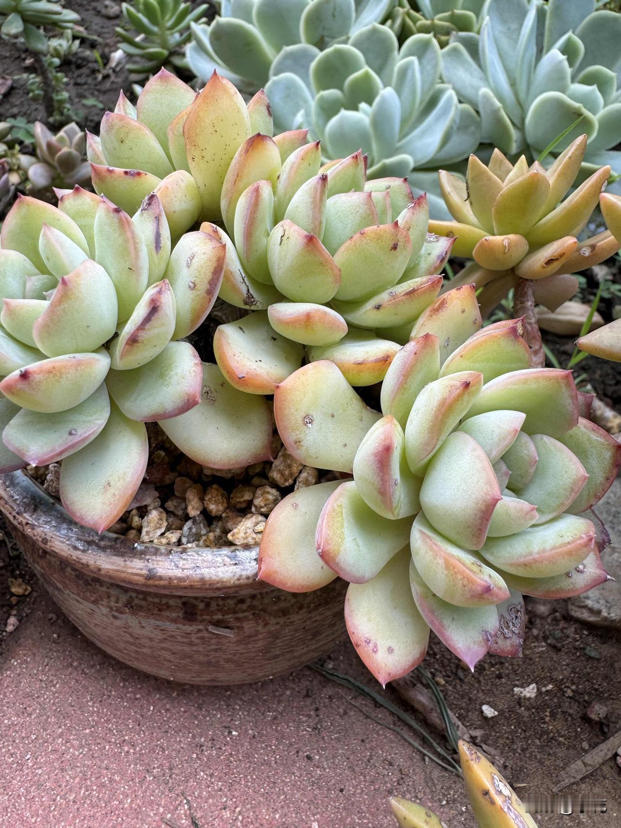 夏天拍的多肉雪野王子,真的萌翻我了!它胖嘟嘟的模样可爱到爆,大气威风的姿态,活脱脱一个王子。 想起我养的多肉佛珠,也是胖嘟嘟的小可爱。第一次养时,夏天闷热,它没扛住。后来发现,佛珠比其他多肉易缺水,颗粒多的土保水性差,不适合它。而且它怕水涝,喜欢半阴环境,夏天得遮阴。 还有桃霜、洛神和艾伦,熬过酷暑和秋老虎,淋了雨还状态超好。但有的肉嘟嘟多肉可不能常淋雨,像我的桃蛋,淋点雨就挂了。养多肉真是门学问啊!