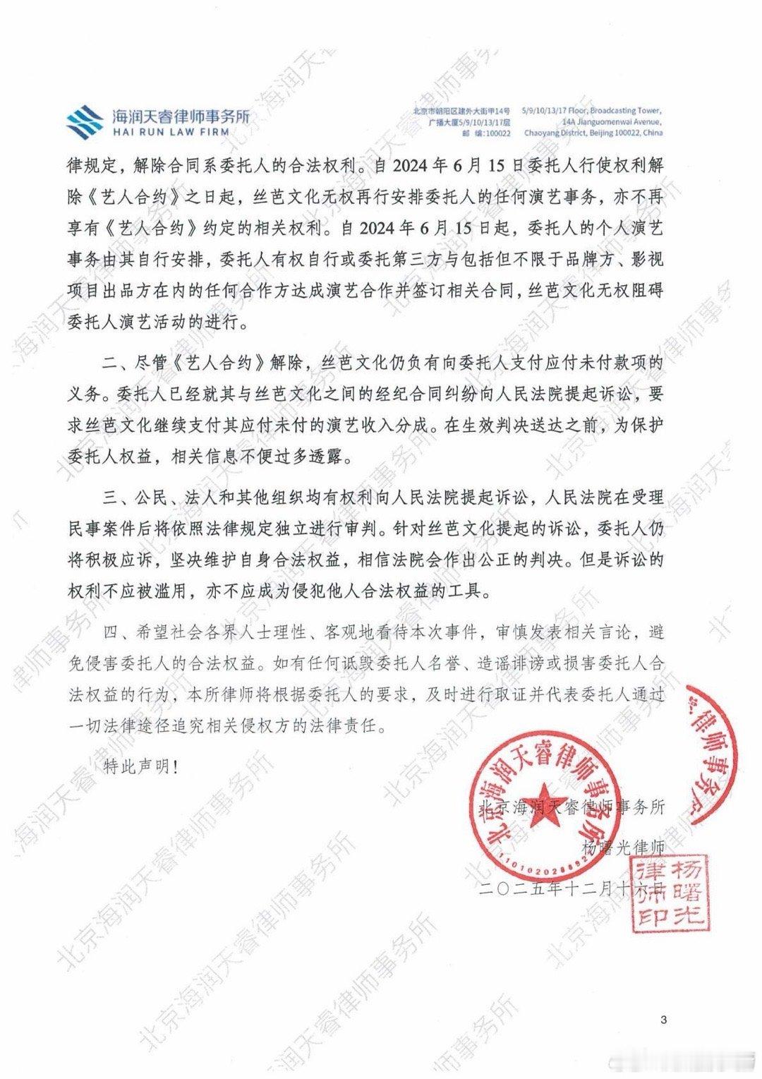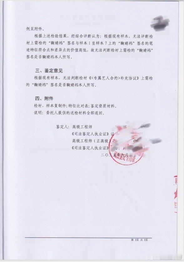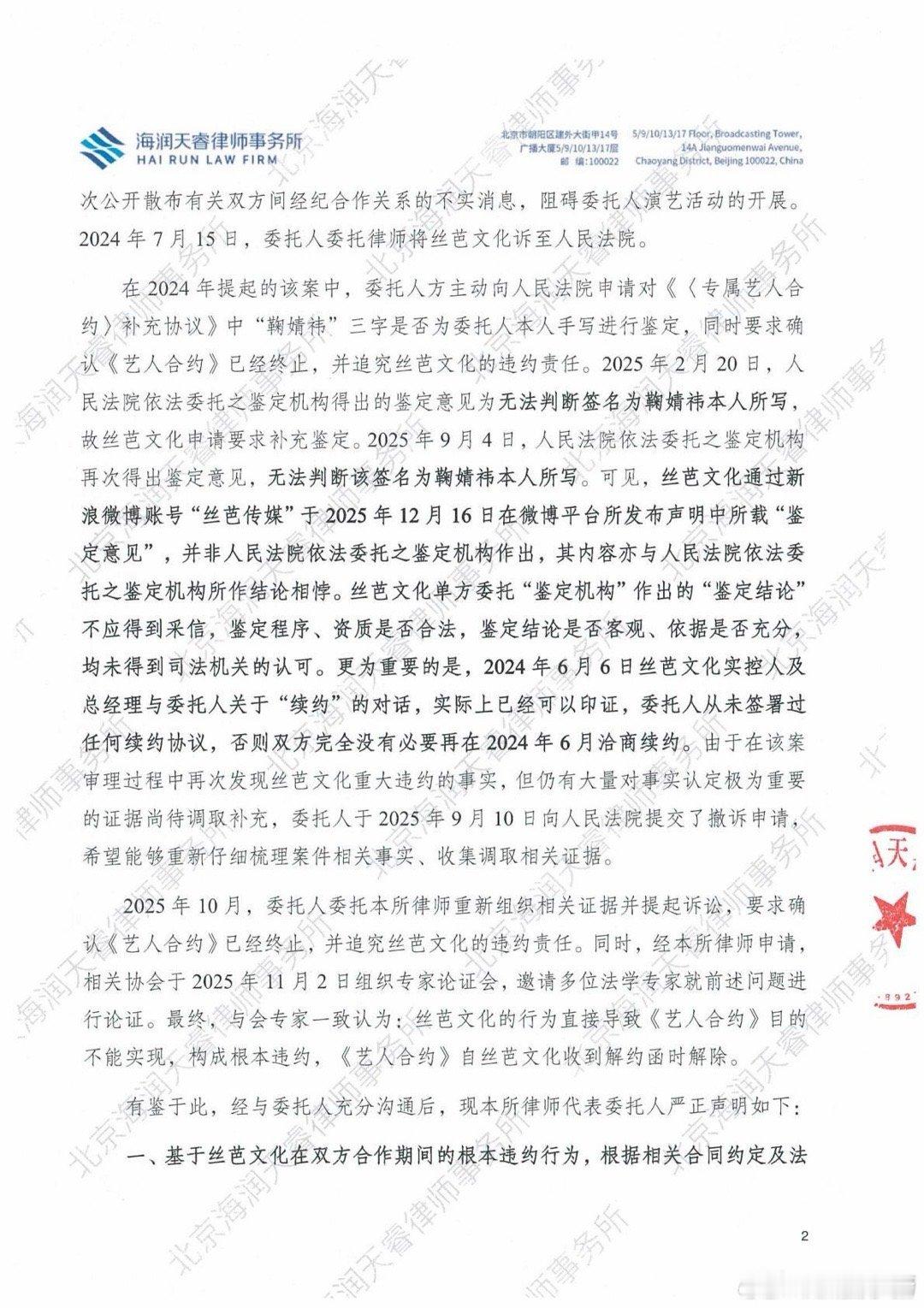 鞠婧祎方发律师声明回应丝芭传媒,法院认可的笔迹鉴定无法鉴定是鞠婧祎本人所签,鞠婧祎是独立艺人! 鞠婧祎方艾特丝芭