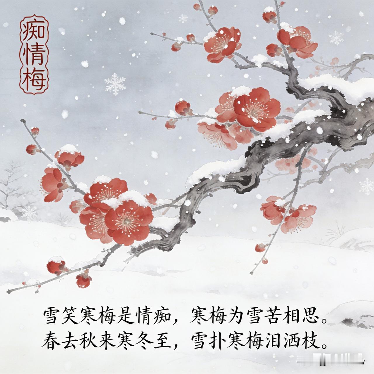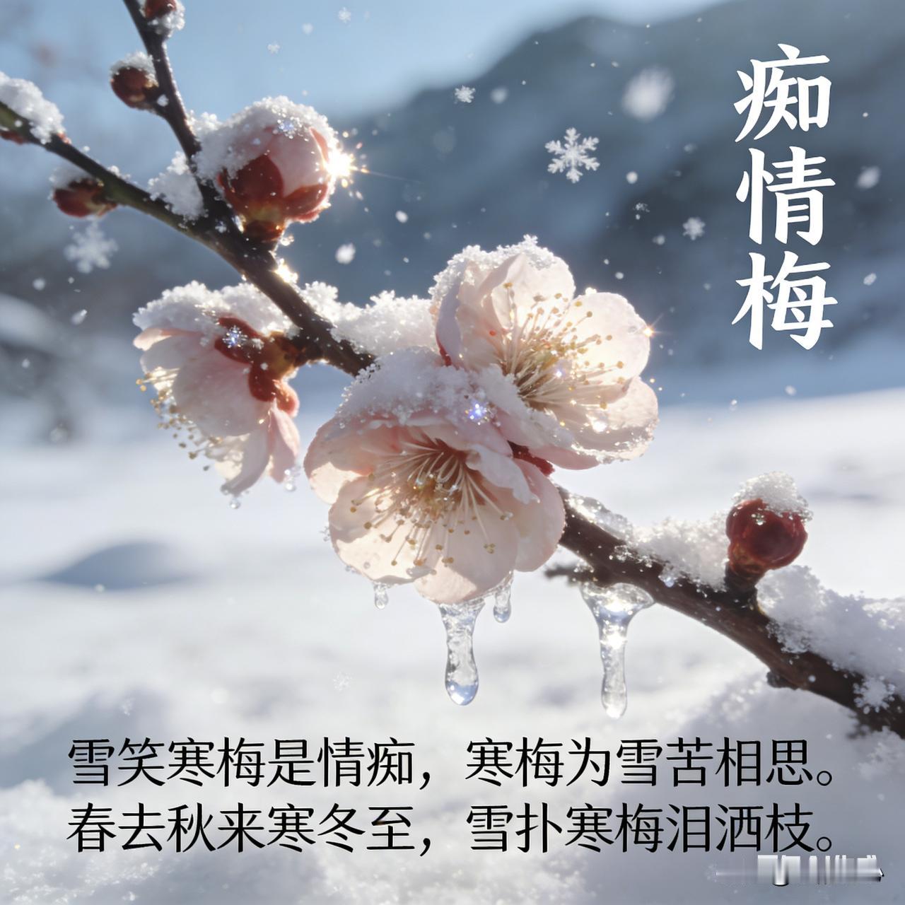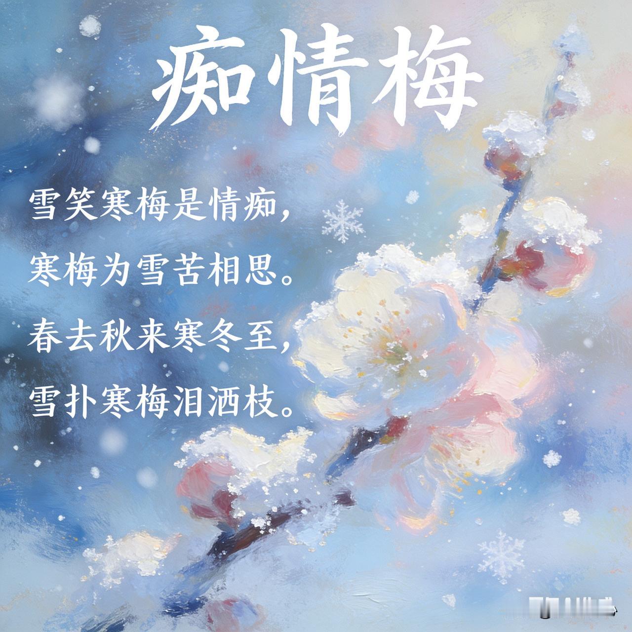 《痴情梅》乐韵诗心原创: 雪笑寒梅是情痴, 寒梅为雪苦相思。 春去秋来寒冬至, 雪扑寒梅泪洒枝。 《痴情梅》这首七言绝句诗词以雪与梅的互动为喻。描写雪笑寒梅痴情,寒梅却为雪苦苦相思。从春到秋的等待直至冬至雪来,雪扑向寒梅时,梅似落泪于枝。全诗借自然意象,将梅拟人化,以梅对雪的执着等待与深情,暗喻世间纯粹而执着的爱恋,于季节流转中尽显痴情之恋。