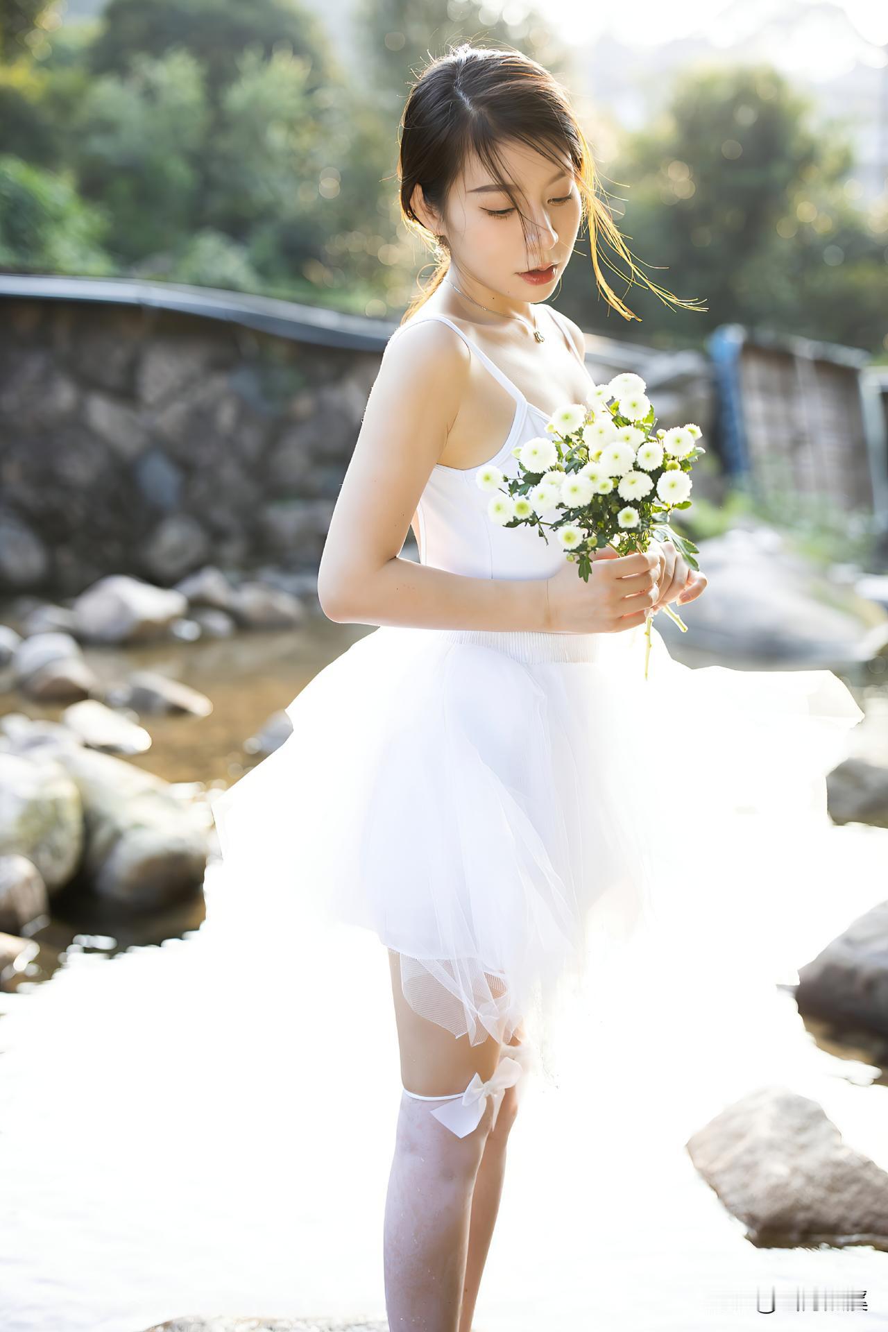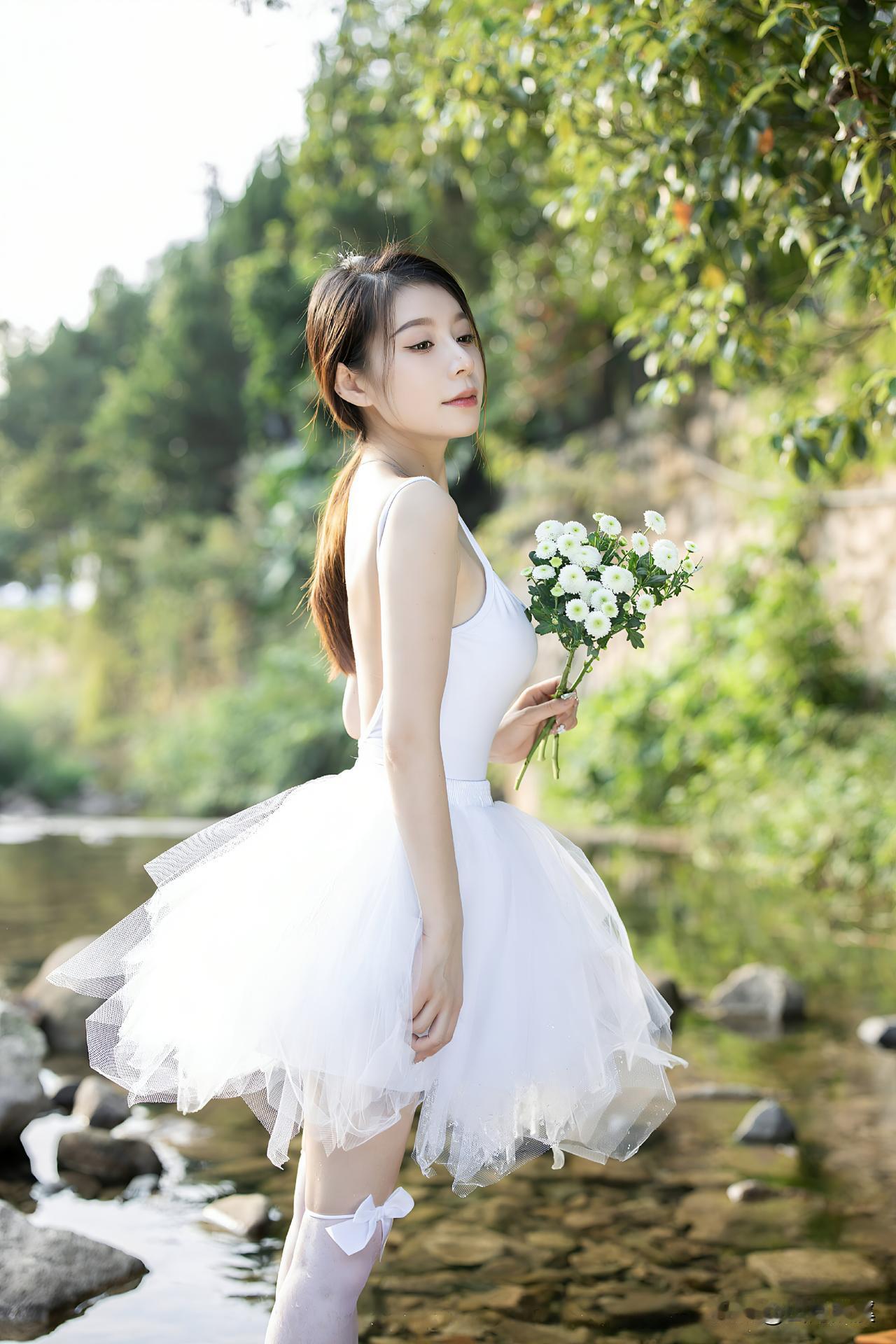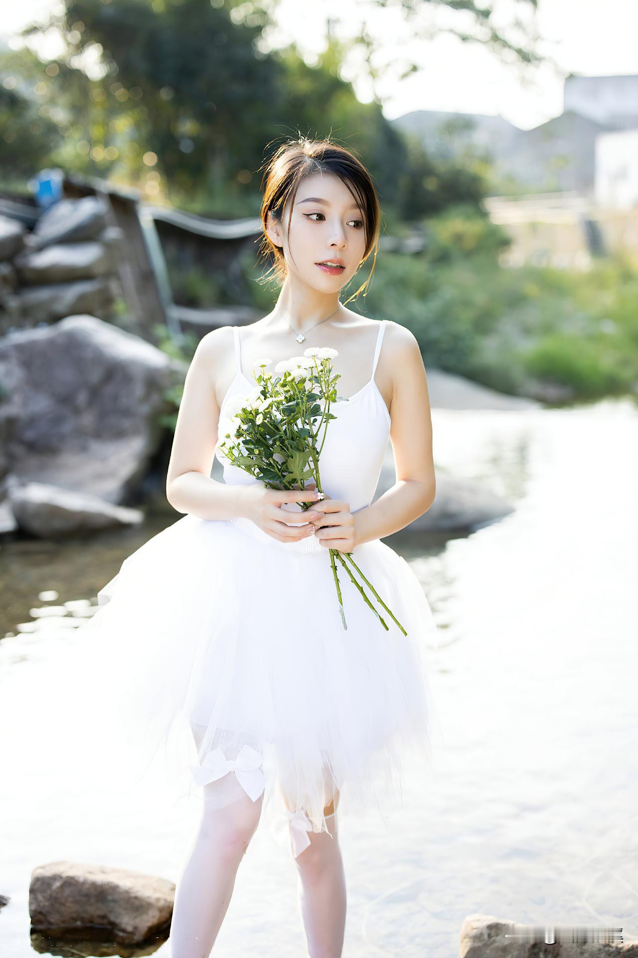 溪流边的白纱裙摆,揉着山野的清风漾开芭蕾的柔。光脚踩在青石上,裙摆扬起的弧度里藏着自然与优雅的缠绵,手里的白花束衬着白纱,让山野间的芭蕾,成了温柔又灵动的诗。