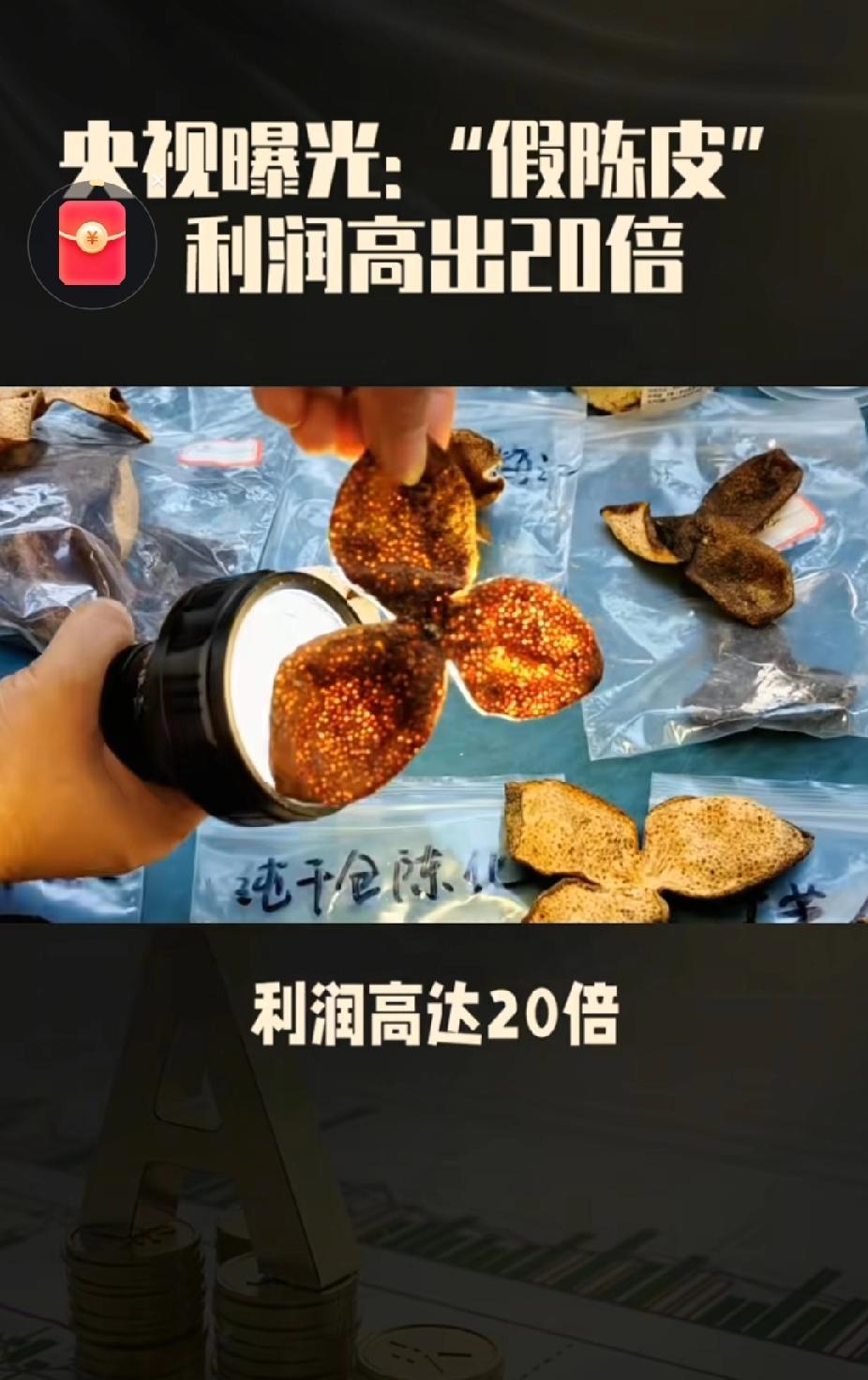央视揭露陈皮市场水太深!成本价70元竟能标价过千?你常喝的“年份陈皮”可能是速成假货! 真让人震惊!你掏上千元买的“十年陈皮”,说不定成本就70块左右!央视记者暗中调查后发现,广西浦北的茶枝柑新鲜果皮被做成“工艺皮”,短短一个月就能当自然陈化三五年的陈皮来卖。这些假货批发价也才70块钱,一转手就能炒到500到1000元! 更让人来气的是,这些广西“工艺皮”还顶着“新会陈皮”的名头卖高价。记者在新会好几家企业的仓库里,都看到了一堆堆的浦北假陈皮。有商家毫不避讳地说:外地的皮贴上地理标志,转眼就成了“正宗新会老陈皮”,根本不用担心被查到! 更夸张的是,就连不是茶枝柑的椪柑皮都敢拿来冒充新会陈皮,利润能翻20多倍!你琢磨琢磨,你平时泡的陈皮水,说不定根本不是陈皮,而是几毛钱一斤的椪柑皮罢了... 这些商家为了多赚点钱,连最基本的诚信都不讲了!咱们买陈皮可得瞪大了眼睛,别被“年份”“产地”这些虚头巴脑的东西给骗了。你有没有买到过这种假陈皮?来评论区说说你的经历呗!
