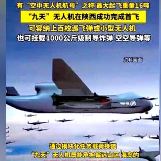 2025年12月11日,陕西蒲城,“九天”无人机首飞成功,虽在国内反响平平,却在全球军事界引发震动。该机以16吨最大起飞重量、6吨载重、15000米飞行高度、700千米/时速度、7000公里航程及异构蜂群任务仓等优势,展现强大作战能力。 一、“九天”无人机优势显著。载荷达6吨,远超土耳其TB-2和美军MQ-9“死神”无人机,挂载能力堪比多型战机,且可挂载空空导弹,开启无人机空战时代。1.5万米巡航高度避开多数防空系统威胁,7000公里航程覆盖第一岛链、关岛等地,还能实施自杀式突击,威慑范围广。异构蜂巢任务舱可释放上百架小型无人机,运用蜂群战术,让防空系统难以应对。 二、“九天”无人机成本优势明显。机体结构简单,采用货架产品,制造成本低,动力使用成熟且廉价的涡扇-9发动机,整机成本远低于西方同类无人机。弹药成本方面,通过将微型巡飞弹等运送到敌人防区边缘,降低远程打击成本,巷战中还能作为“空中弹药库”,实现快速火力支援。模块化设计可更换不同任务模块,提升体系作战能力,降低后勤和指挥成本。 三、“九天”无人机军民两用潜力巨大。民用方面,可打通运输梗阻,为地形复杂地区提供高效、低成本的物资运输方案,保障边疆地区物资供应。在大型灾害中,也能发挥“诺亚方舟”作用,进行人员和物资转运。 九天无人机 专家:九天无人机可释放“蜂群”攻击