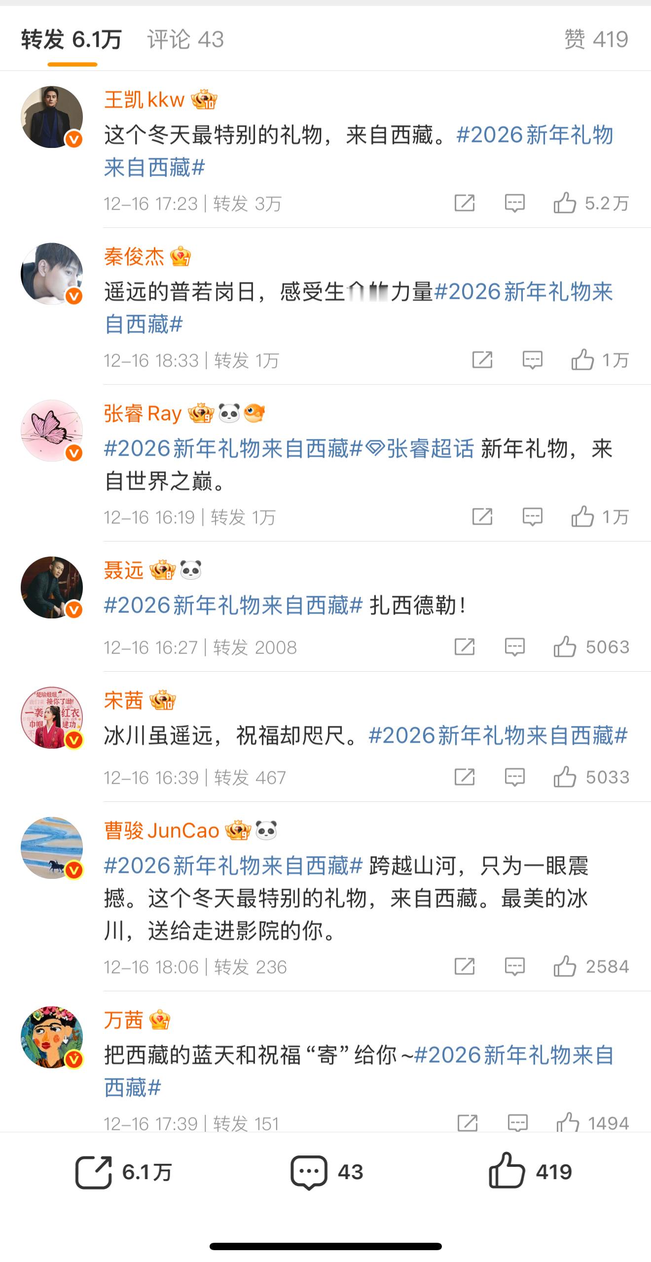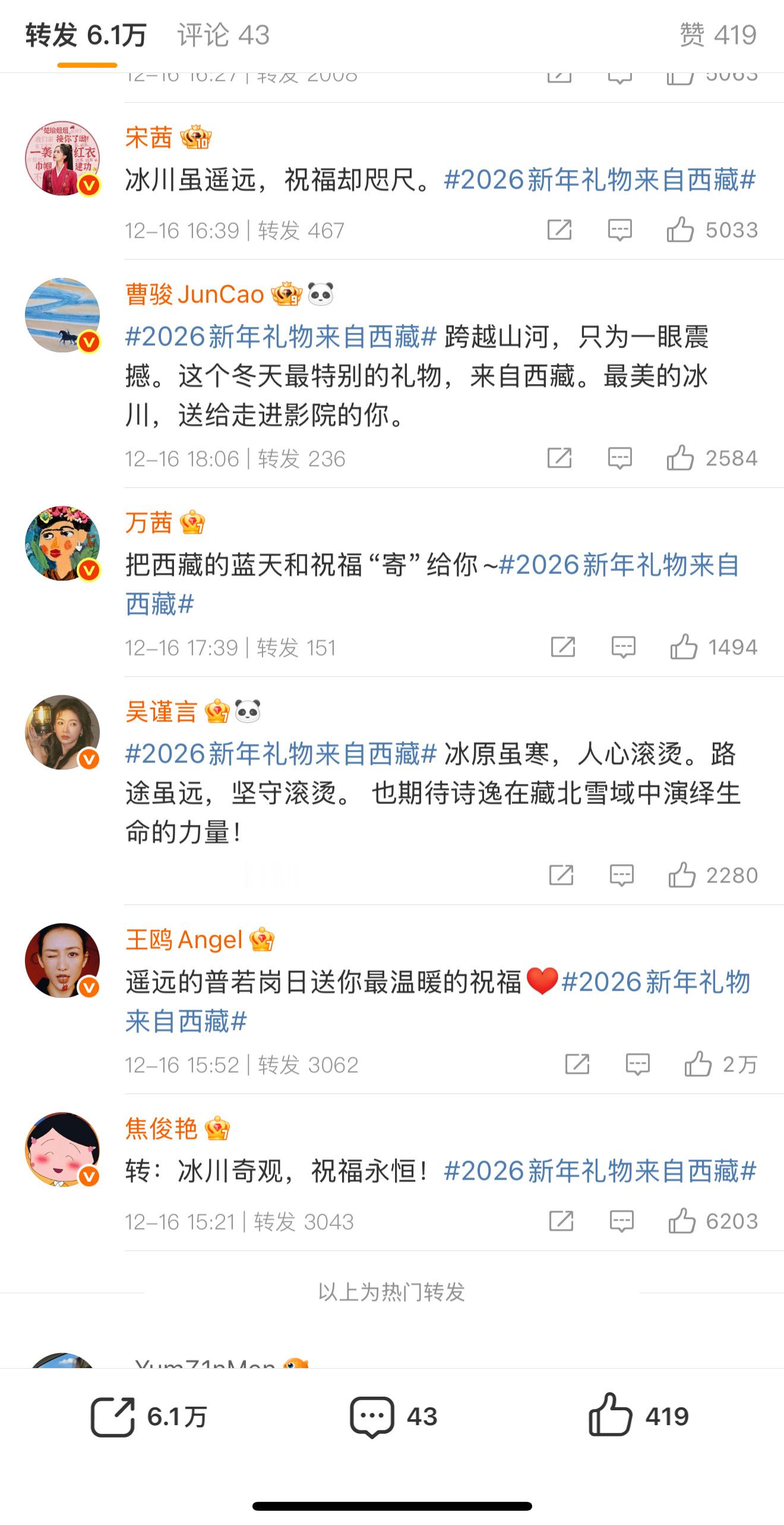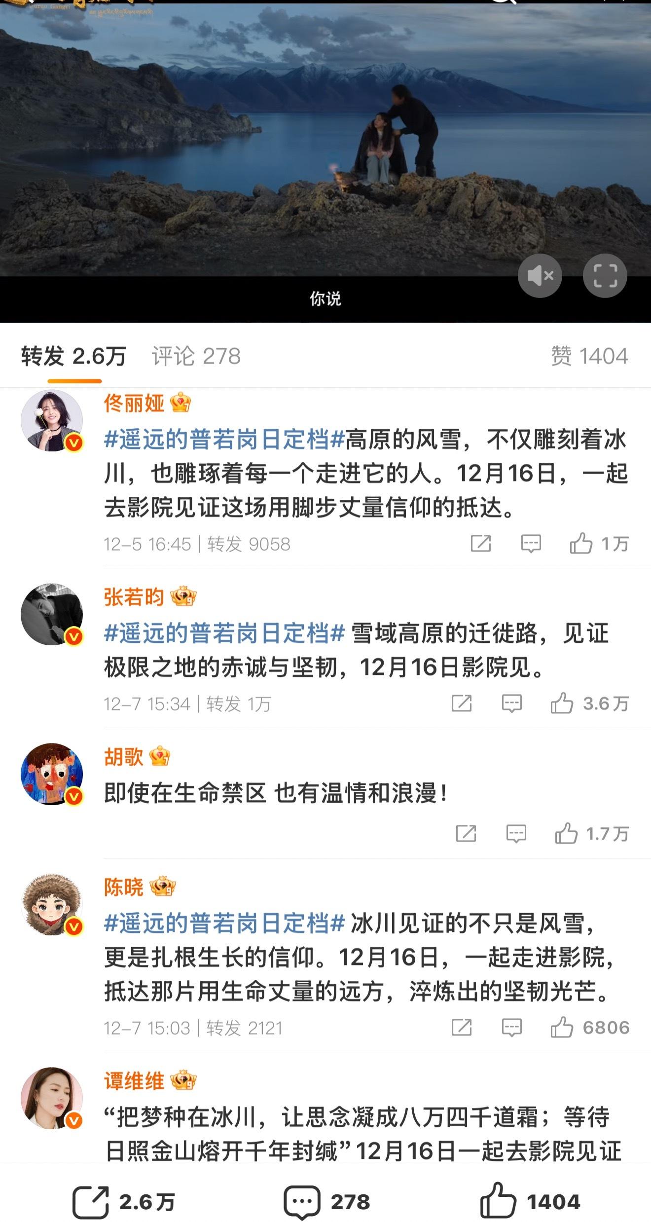 半个娱乐圈都来普若岗日团建了电影《遥远的普若岗日》转评区好热闹,王凯、宋茜、吴谨言、万茜、胡歌、曹骏…好多明星呀,最近少有电影让这么多明星都来团建热闹的啦!电影全程实景拍摄见证世界最高处的“爱”,主演唐诗逸带着大家前往5000多米以上的高原地区,感受白色的旷野在眼前无尽铺展,冰川的棱角切割着遥远的天际,野牦牛的牛蹄嘀嗒,敲击在无垠的冰雪上,那座神圣的心形冰川就那样安静地矗立在那里,感觉眼睛和心灵都已经被治愈,这部让半个娱乐圈团建的电影,宝子们快去冲冲冲呀!