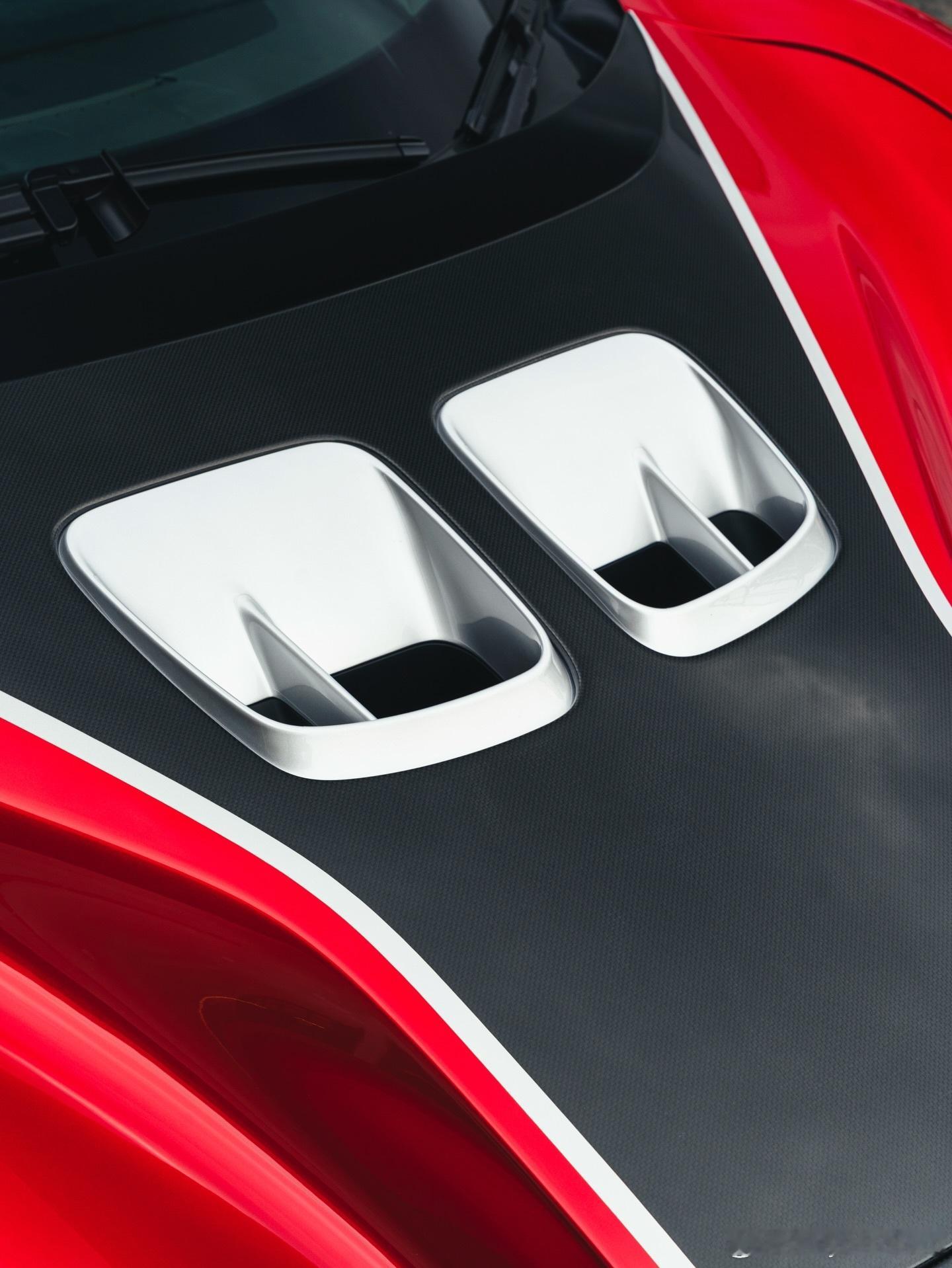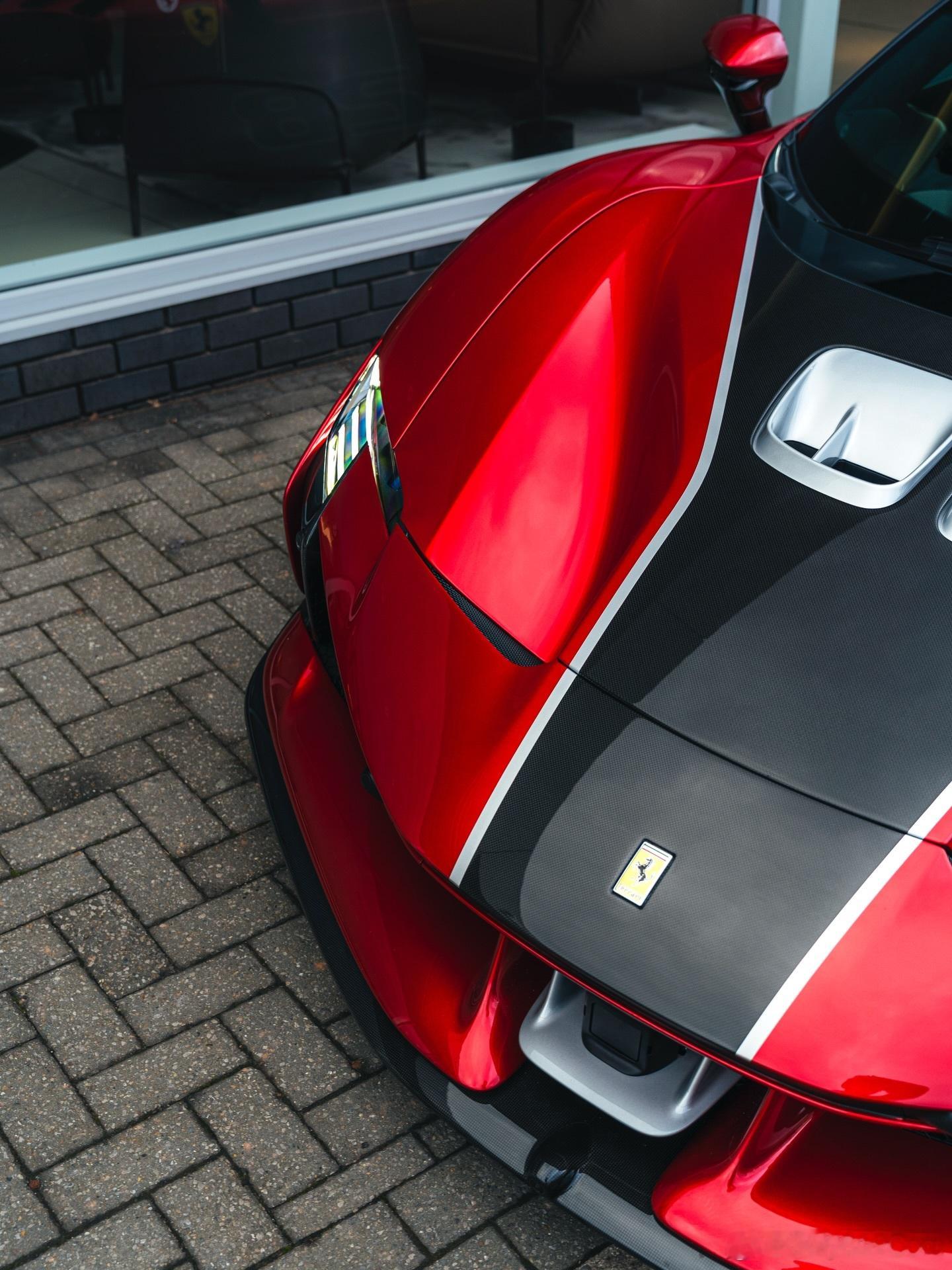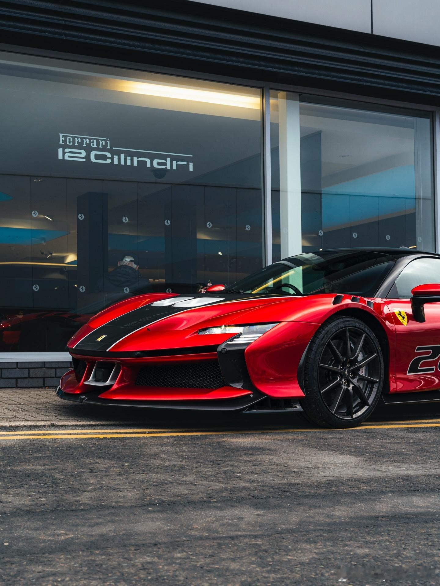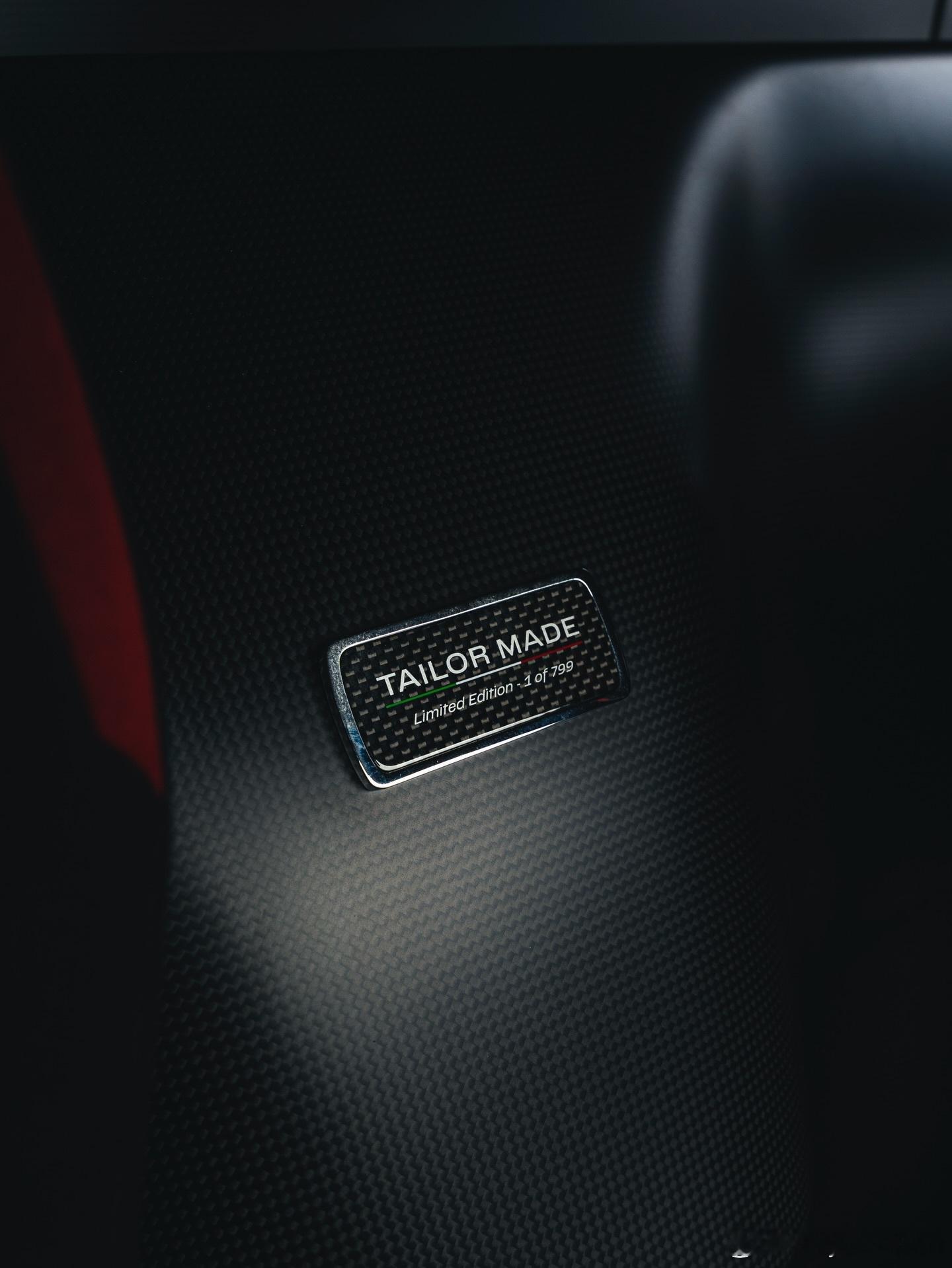 外观配色为Rosso Magma,外观方面选择了特别提供于SF90 XX上的Carbonio A Vista套件,套件描边以及前备箱上的进气口使用了Argento Nurburgring进行点缀,此外还选择了碳纤维轮毂和漆盾,两侧车门下方选择了以Nero DS为主体,Argento Nurburgring为描边的28号赛车编号。内饰方面以默认的Nero Alcantara为主体,搭配部分红色细节点缀,整体来说没有太多新意,但这确是一台Tailor-made作品。交付于位于英国曼彻斯特的Strastone Ferrari Manchester。图片来自