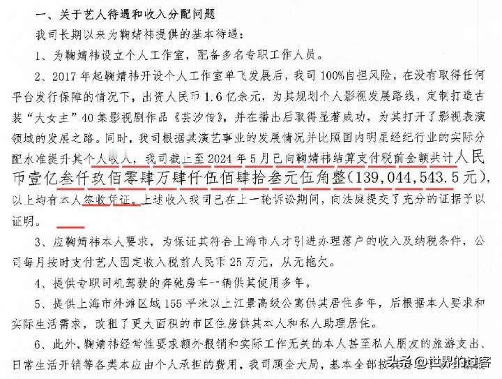 经纪公司曝光明星的收入,这收入令人大吃一惊啊! 经纪公司曝光女明星鞠婧祎的收入(高达139,044,535.5元),这对于明星可谓是致命打击,无异于底裤曝光,以后向大众卖惨都不知道怎么卖! 鞠婧祎和她的公司“丝芭传媒”因为合同问题一直风波不断。 当公司看到舆论导向支持鞠婧祎时,丝芭传媒一气之下直接公布了他们在十年内支付给鞠婧祎一亿多元的人民币,并且还为鞠婧祎解决了上海户口问题,以及上海江景住房。 这招太狠了,完全是公司企图让大众仇富,引起舆论导向明星的高收入,果然最狠还是资本持有者! 不过话说回来,十年收入1亿多人民币,真的让人羡慕嫉妒。 虽然这一亿多还没有之前被封杀女明星偷税漏税的多,但是总感觉娱乐圈的钱也太好挣了,随随便便就是以亿为单位! 普通人一辈子的赚不到人家一年的收入。 大家明星值不值得这么高的收入?