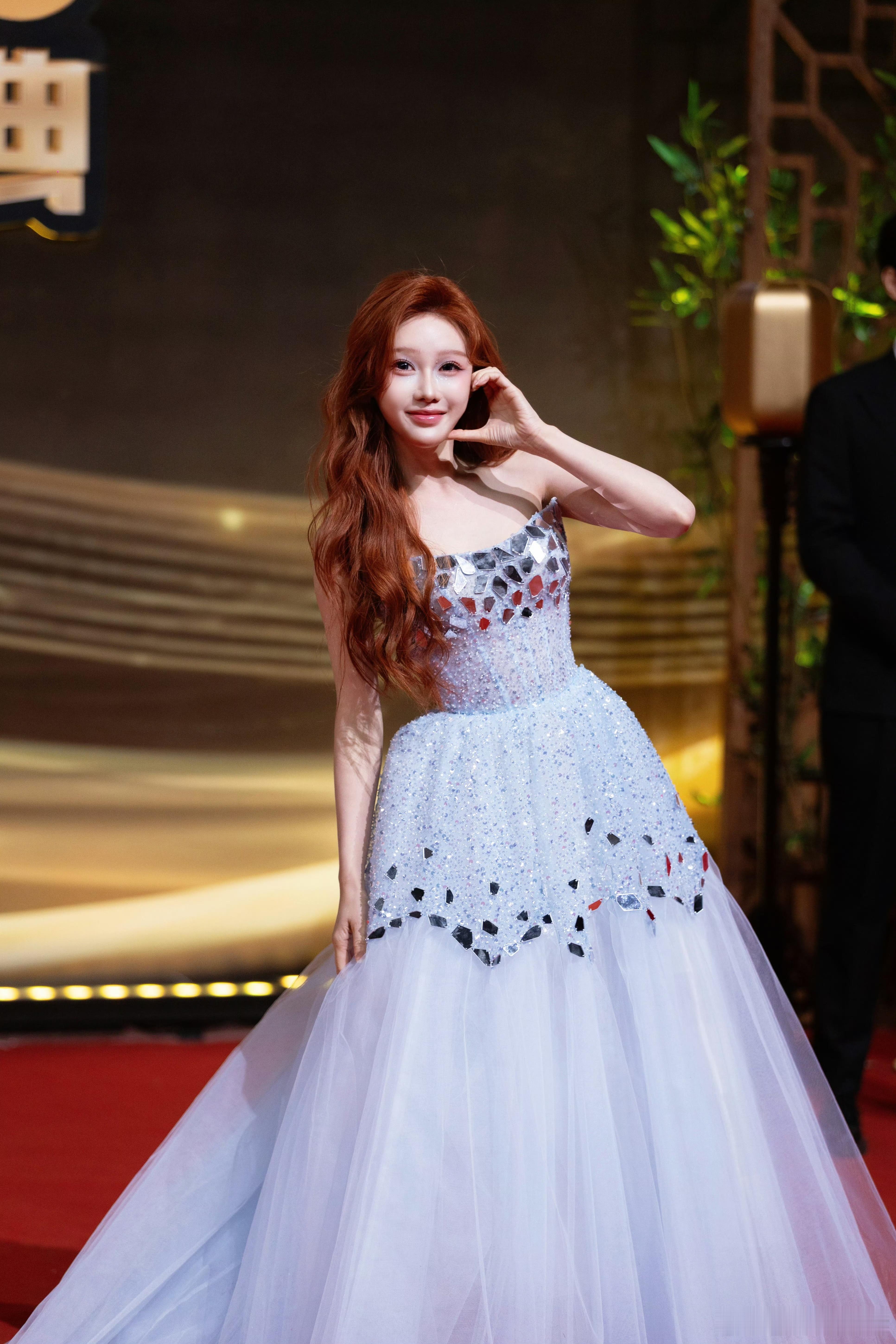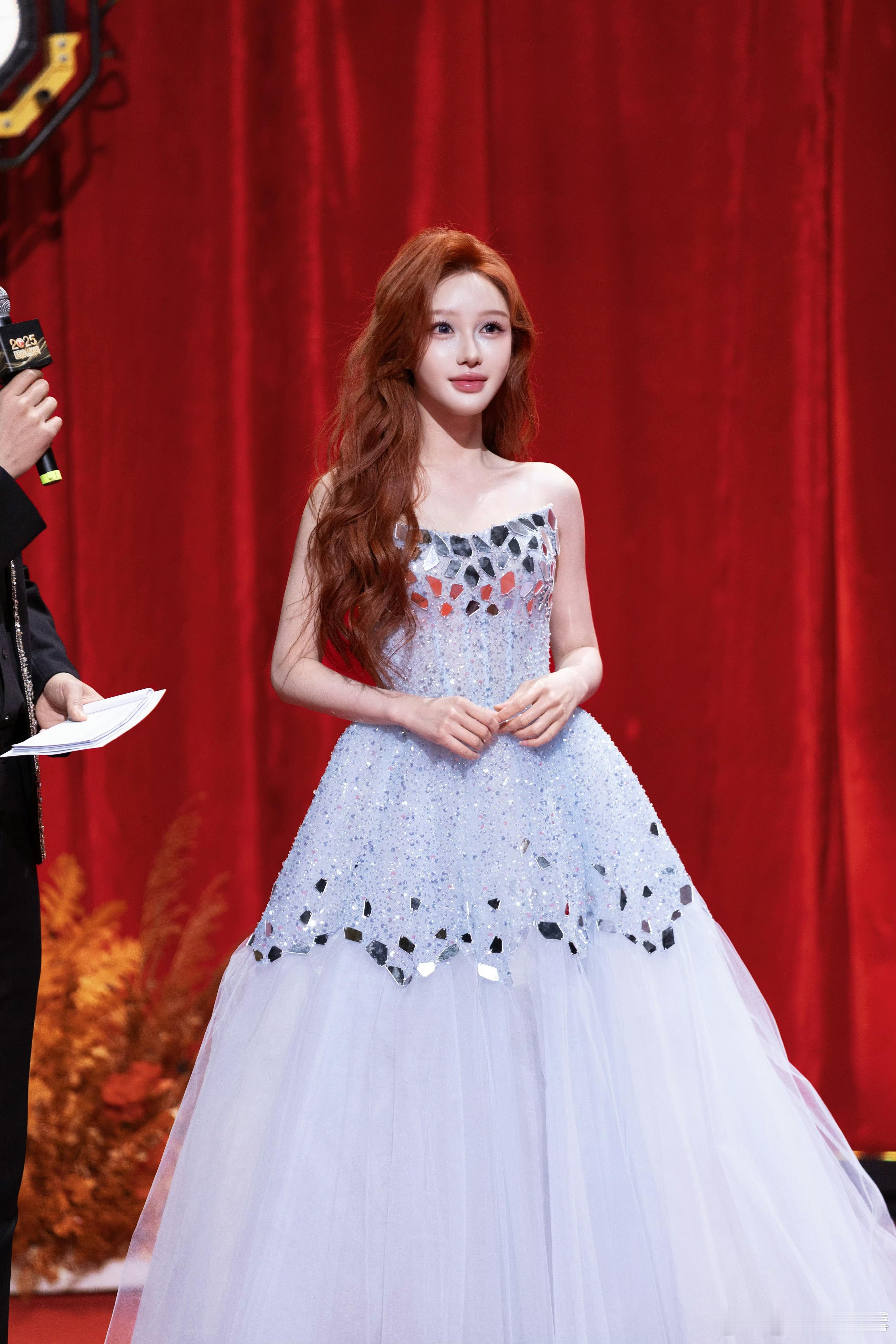 温果希国剧盛典温果希国剧盛典珍珠琉璃妆温果希国剧盛典碧波人鱼妆 温果希在安徽卫视国剧盛典的红毯上惊艳亮相,海蓝色长裙与金红色头发相得益彰,眼周的琉璃珍珠妆容如梦似幻,仿佛深海人鱼公主来到陆地,瞬间吸引了所有目光!