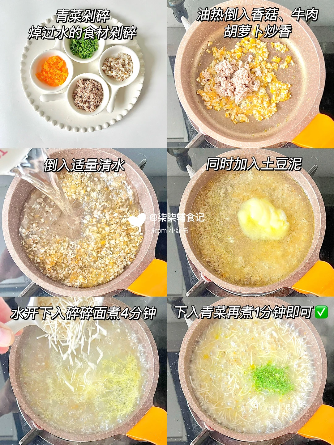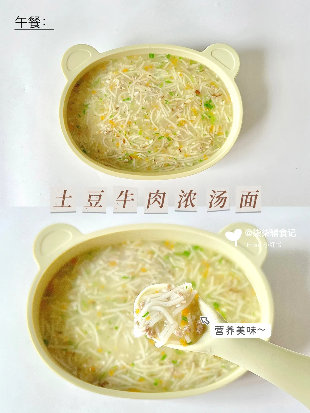 🥣:土豆牛肉浓汤面、时蔬太阳蒸蛋