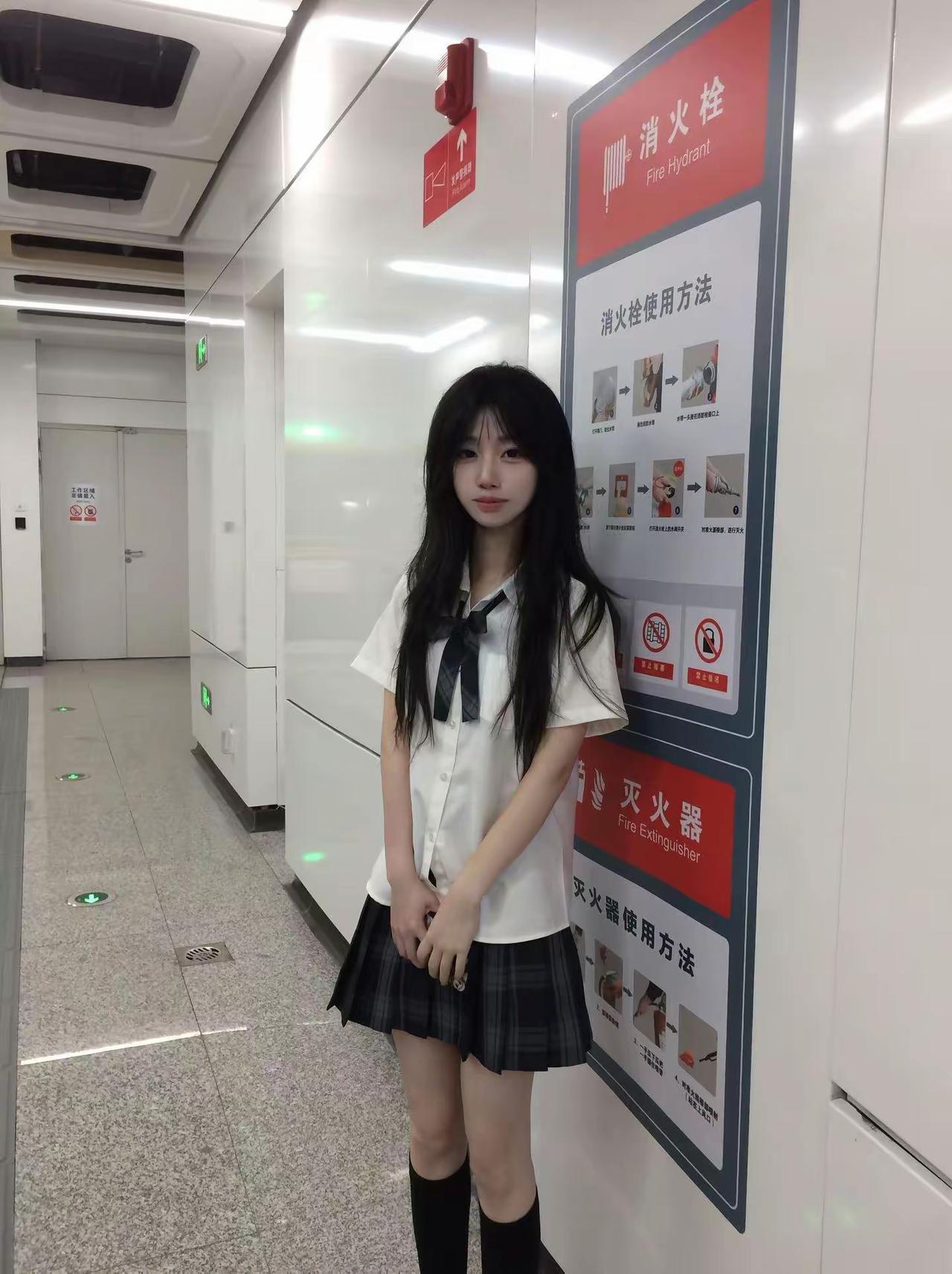 地铁站的少女,黑白校服搭配,青春气息满满!📸✨黑白裙子穿搭 地铁女神穿搭 地铁