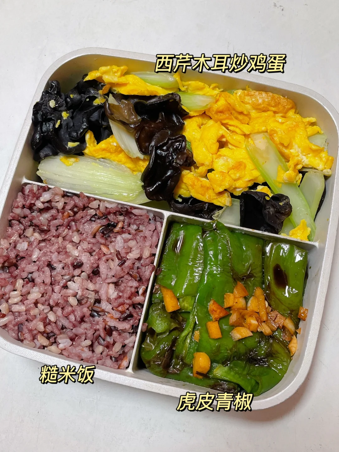 📍米饭+西芹木耳炒鸡蛋+虎皮青椒