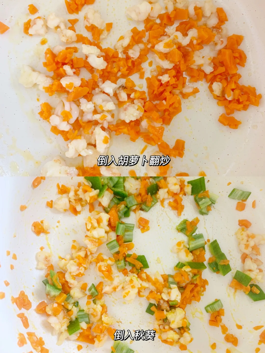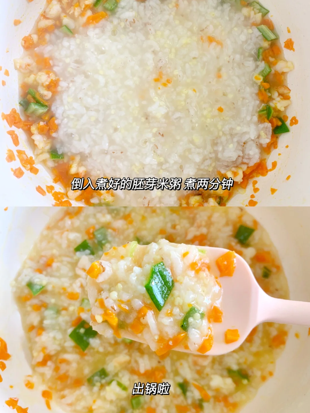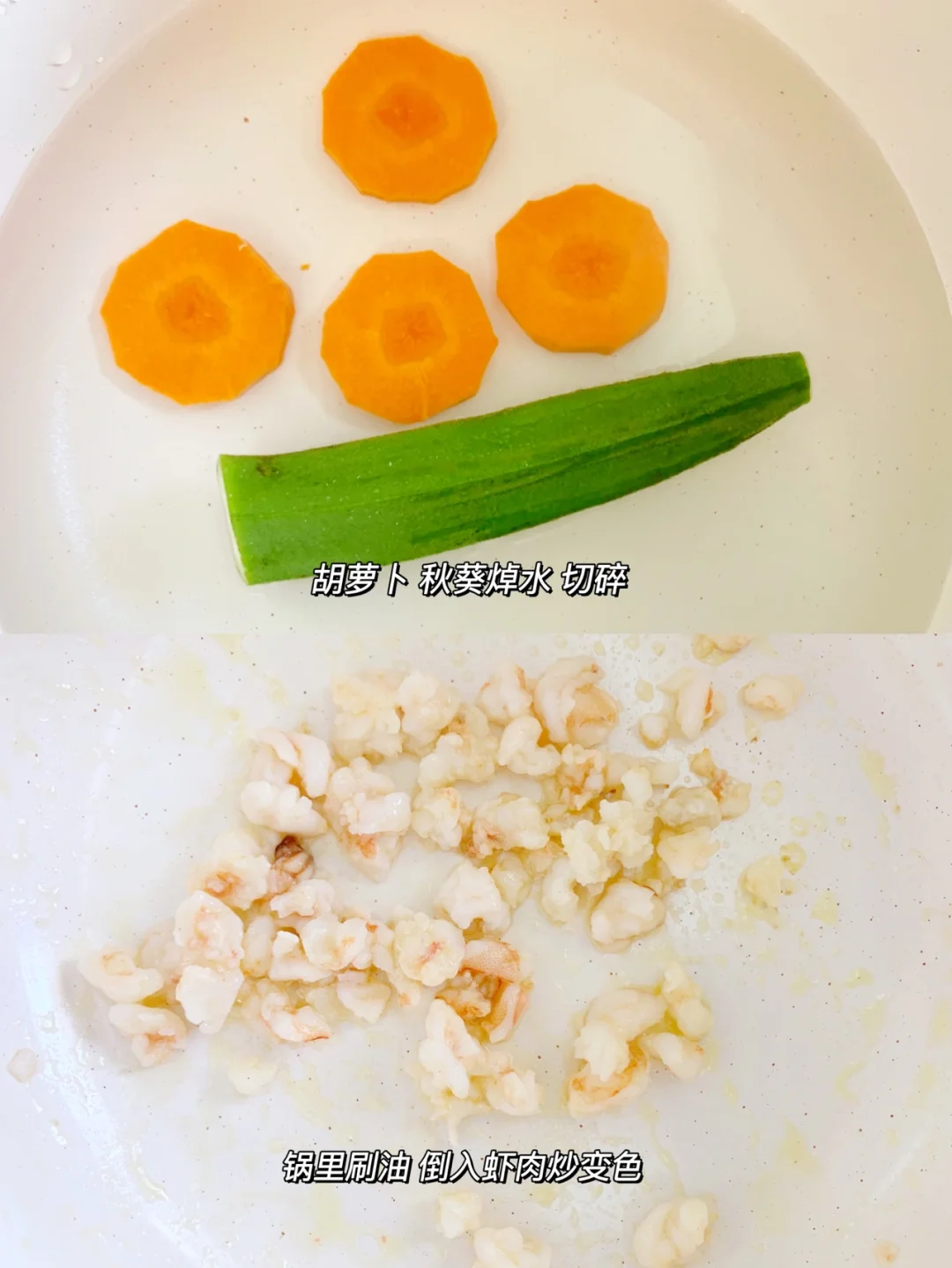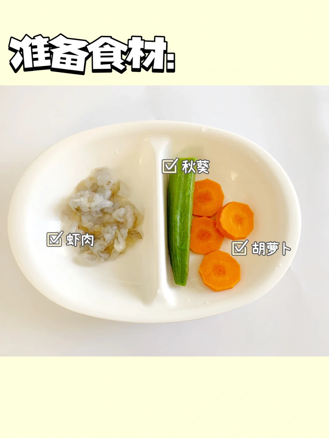 今天做了这道补钙又营养的秋裤鲜虾粥[偷笑R] 秋葵营养价值非常高,帮助消化,缓解便秘,补钙补维生素,含钙量也比较高哦。做法简单,赶紧给宝宝安排吧✅ ——— 【食材】 秋葵 胡萝卜 虾肉 . 【做法】 1⃣️胚芽米提前煮熟,胡萝卜和秋葵焯水切碎 2⃣️锅里刷油,倒入虾肉翻炒变色,倒入胡萝卜翻炒 3⃣️加入秋葵和胚芽米粥再煮两分钟即可 ——— 🌈食材大小根据宝宝咀嚼能力处理 8个月宝宝辅食|9个月宝宝辅食|10个月宝宝辅食|一岁宝宝辅食