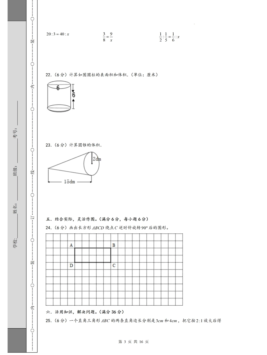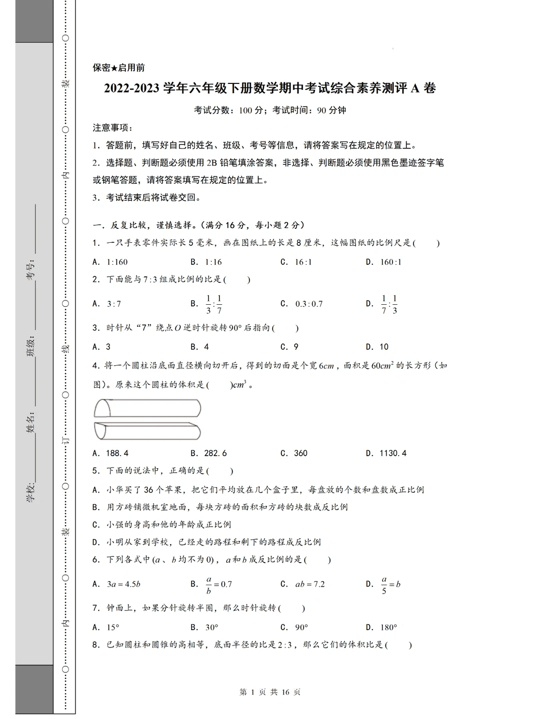 🔥六下期中考试测试卷,考到原题真爽🥰