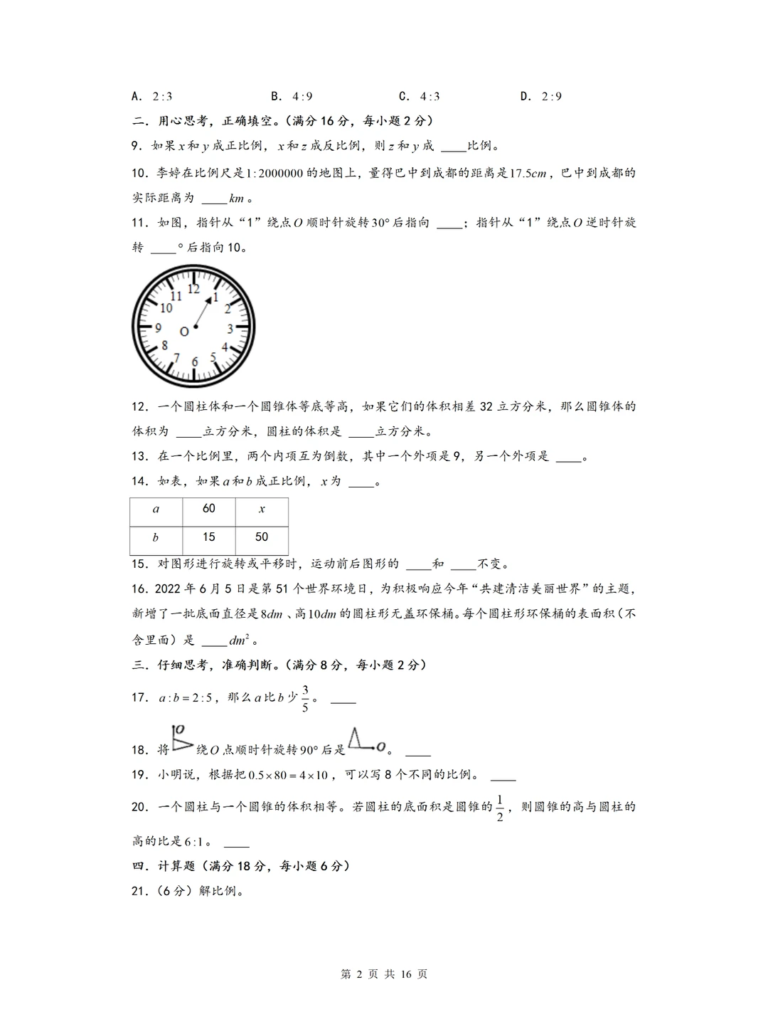 🌈北师大版2022-2023学年六年级数学下册期中考试测试卷+答案 📚考试范围:1️⃣-4️⃣单元 🚀纯试卷分享,收藏给孩子练习,看是否掌握牢固