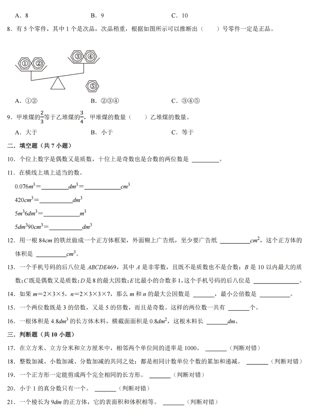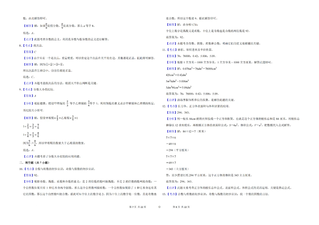 ✅8、一个数,如果除了1和它本身还有别的因数,这样的数叫做合数。