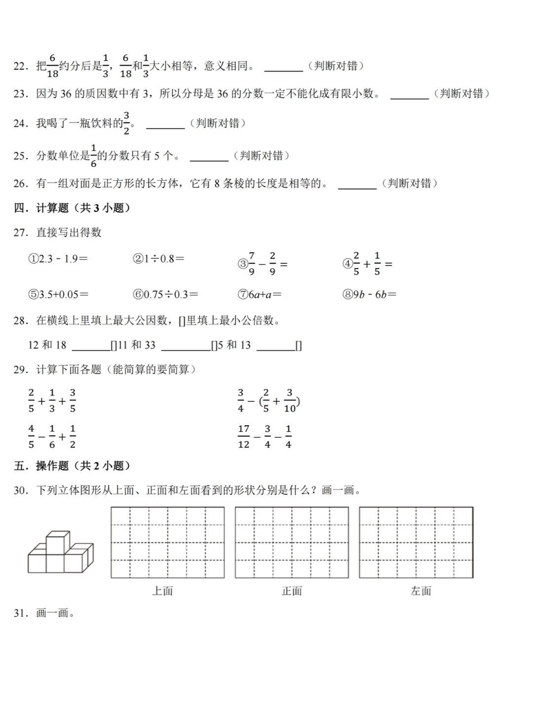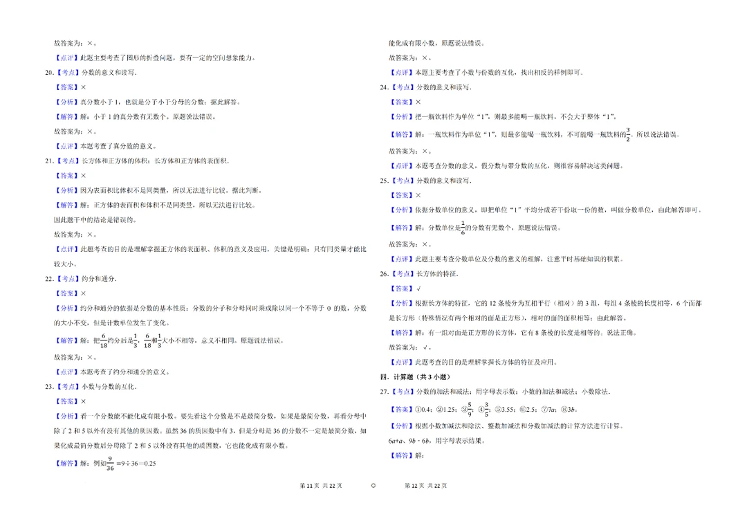 🌈【分数单元】