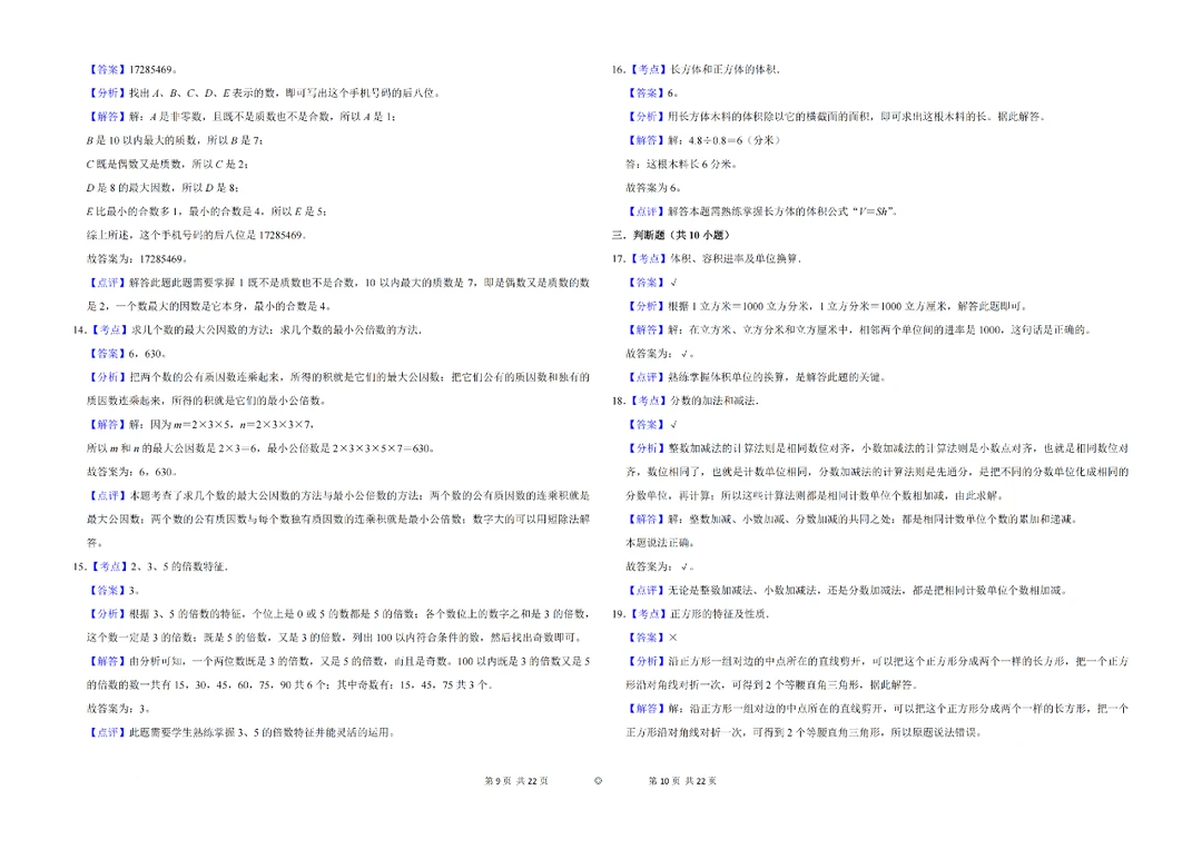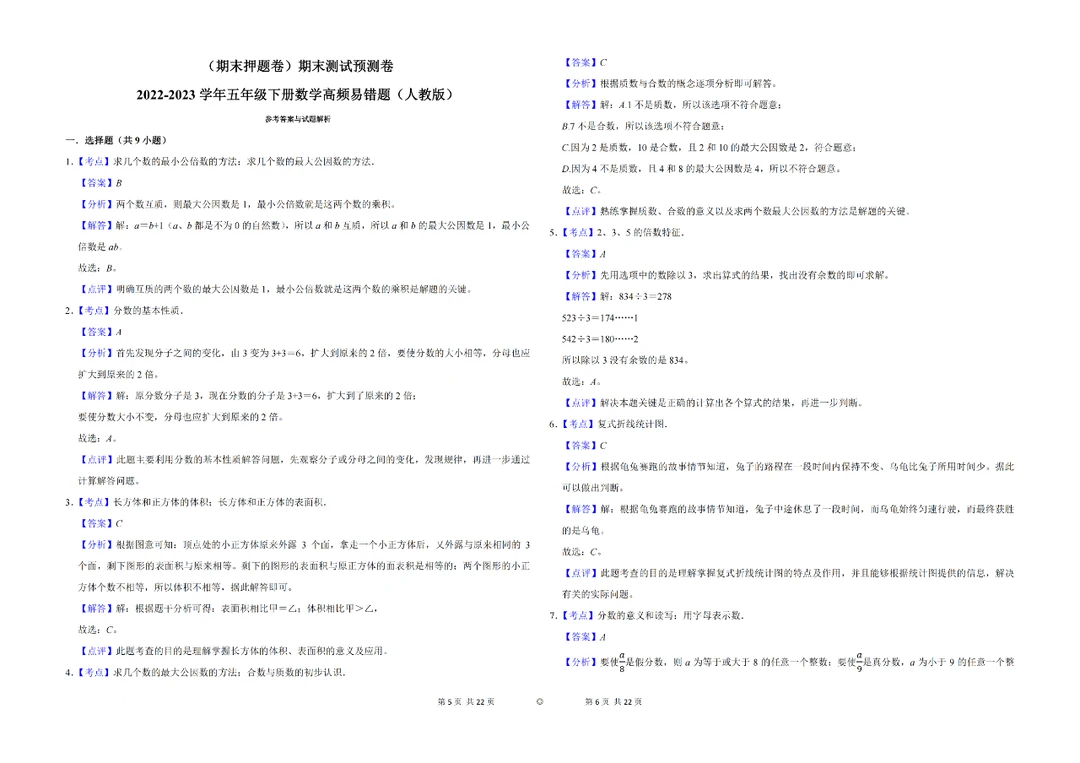 📚小学数学:五年级下册数学必背易错知识点✅