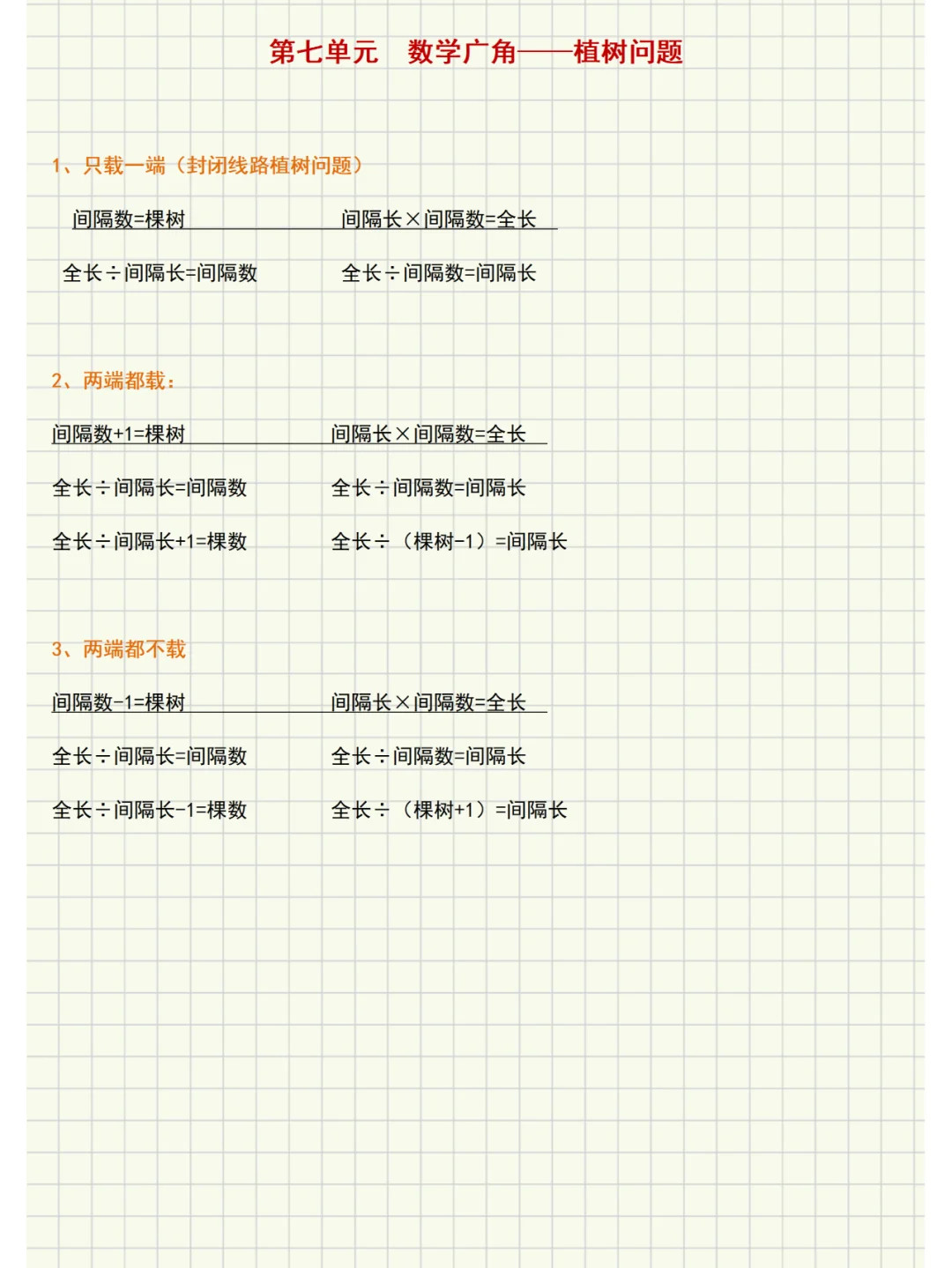 👉而植树问题属于应用题板块,是小学数学中比较典型的类型之一。做题的时候要抓住这几个关键量:关键量:棵数、间隔数、间隔长度、总距离。