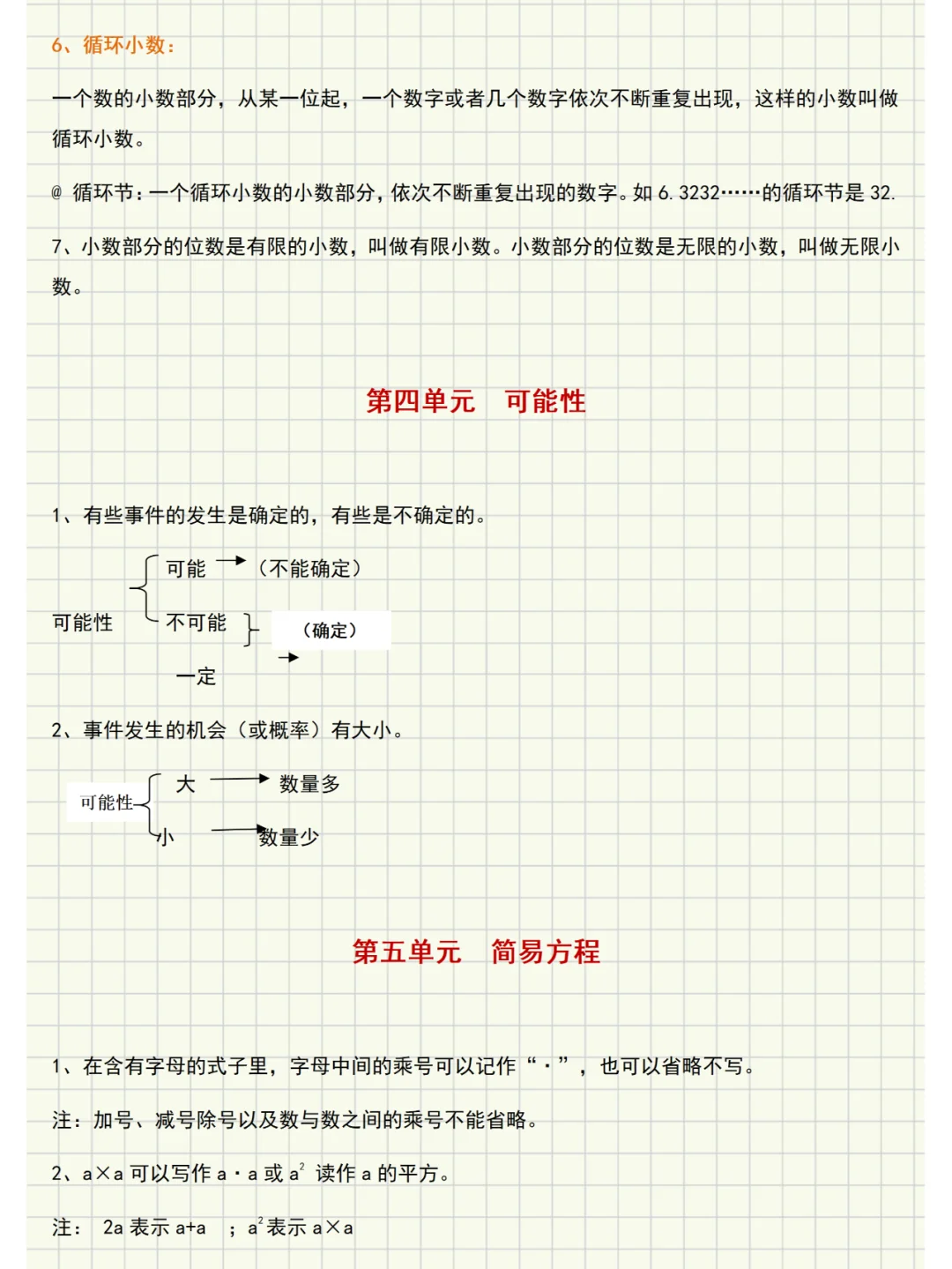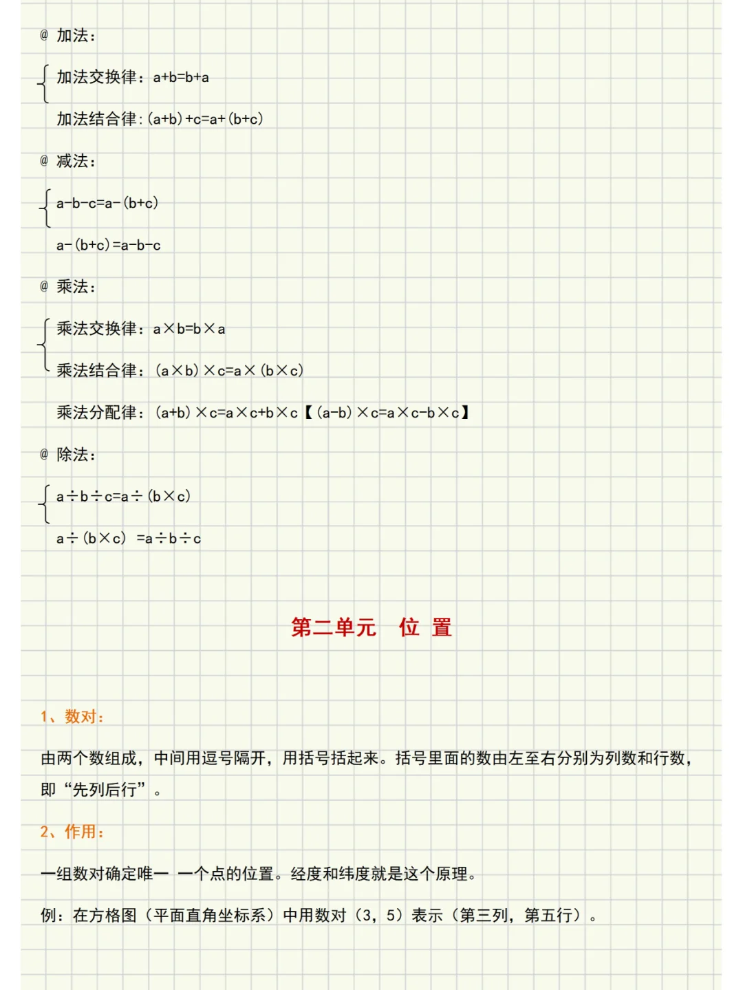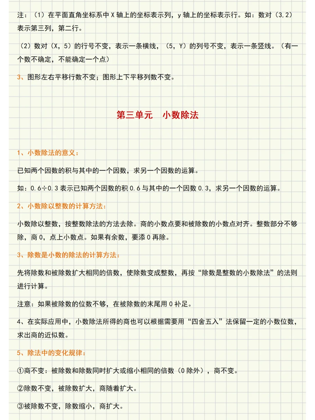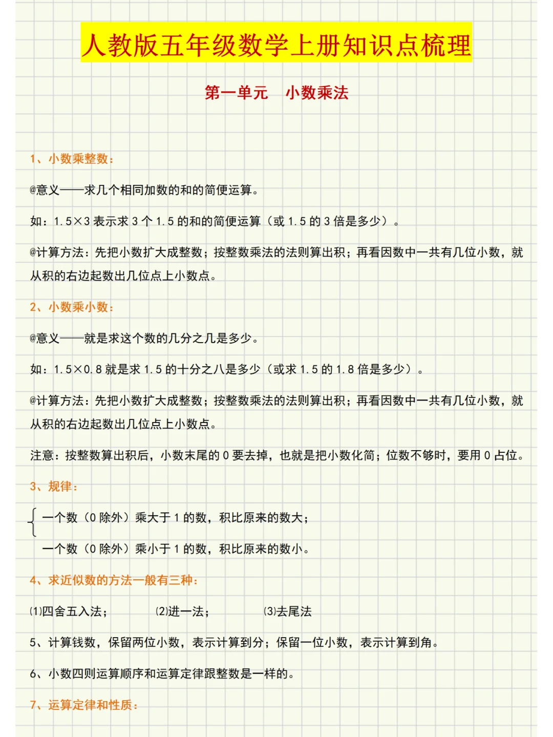 🌈人教版五年级数学上册知识点梳理,主要内容有: