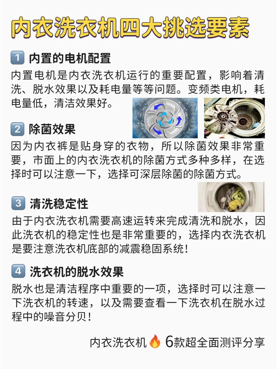电机作为内衣裤洗衣机的重要配置,对洗衣机的清洁、脱水能力以及耗电量都有影响。建议挑选前了解不同电机的配置优势。