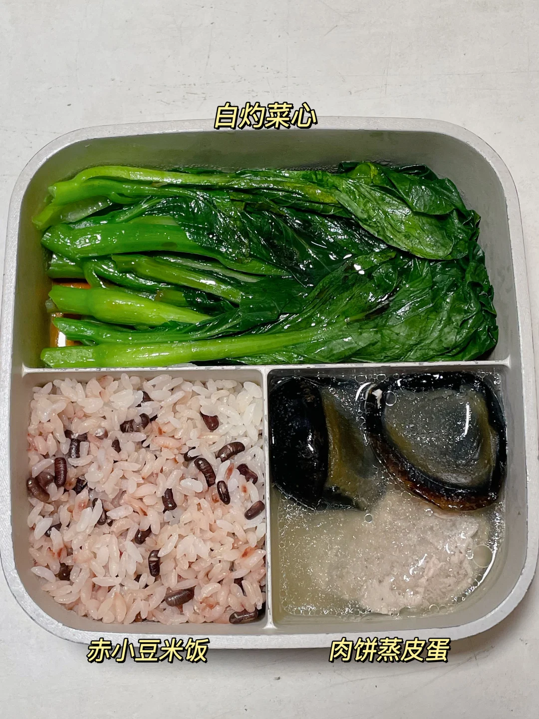 📍赤小豆米饭+肉饼蒸皮蛋+白灼菜心