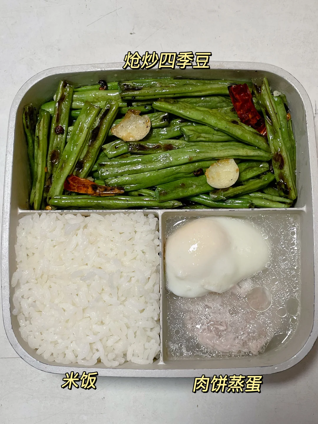 📍米饭+肉饼蒸蛋+炝炒四季豆