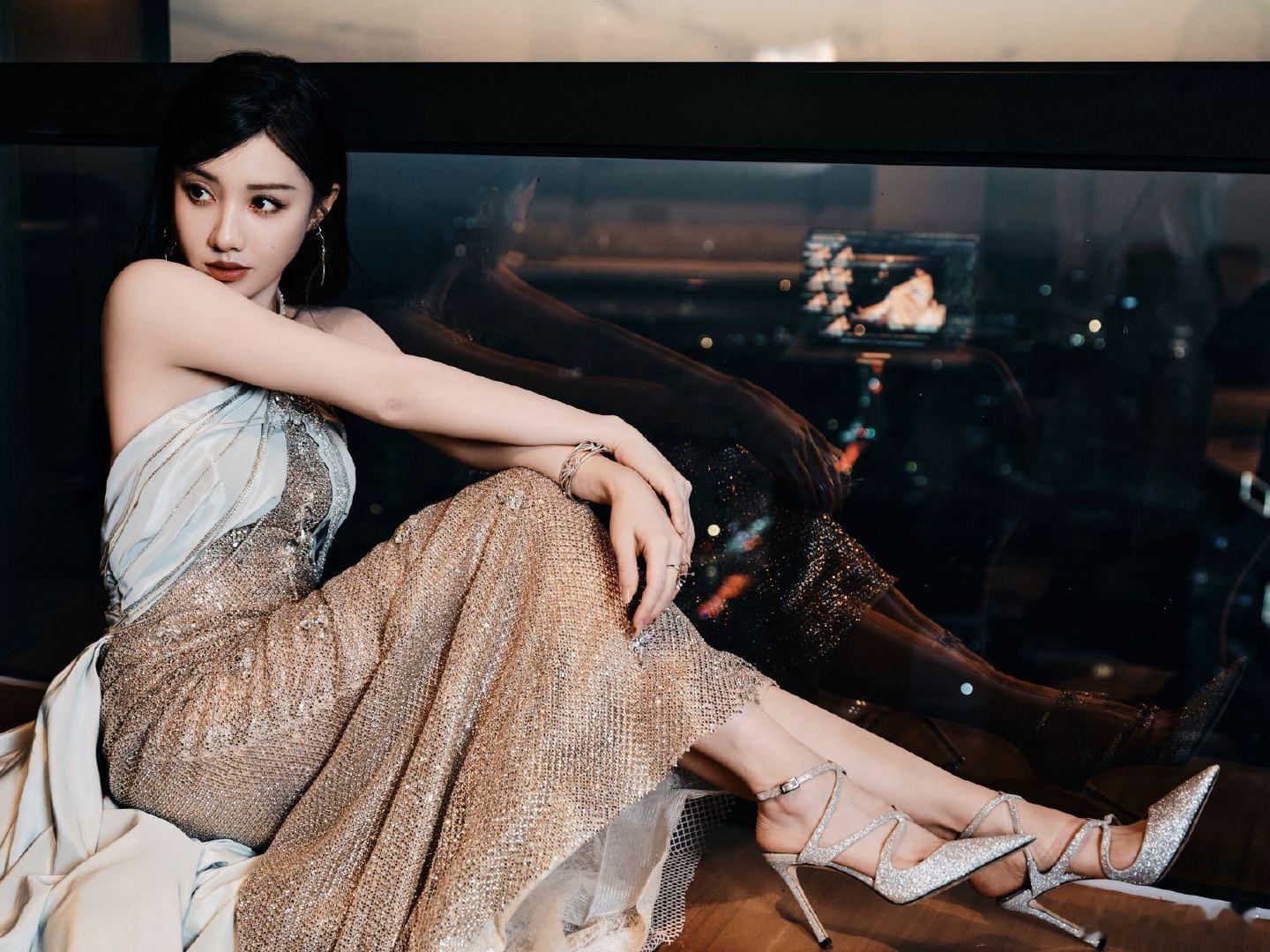 王鹤润造型封神了!王鹤润有种没吃过苦的美 薄荷绿鱼尾裙缀满金色碎钻,闪耀夺目,贵
